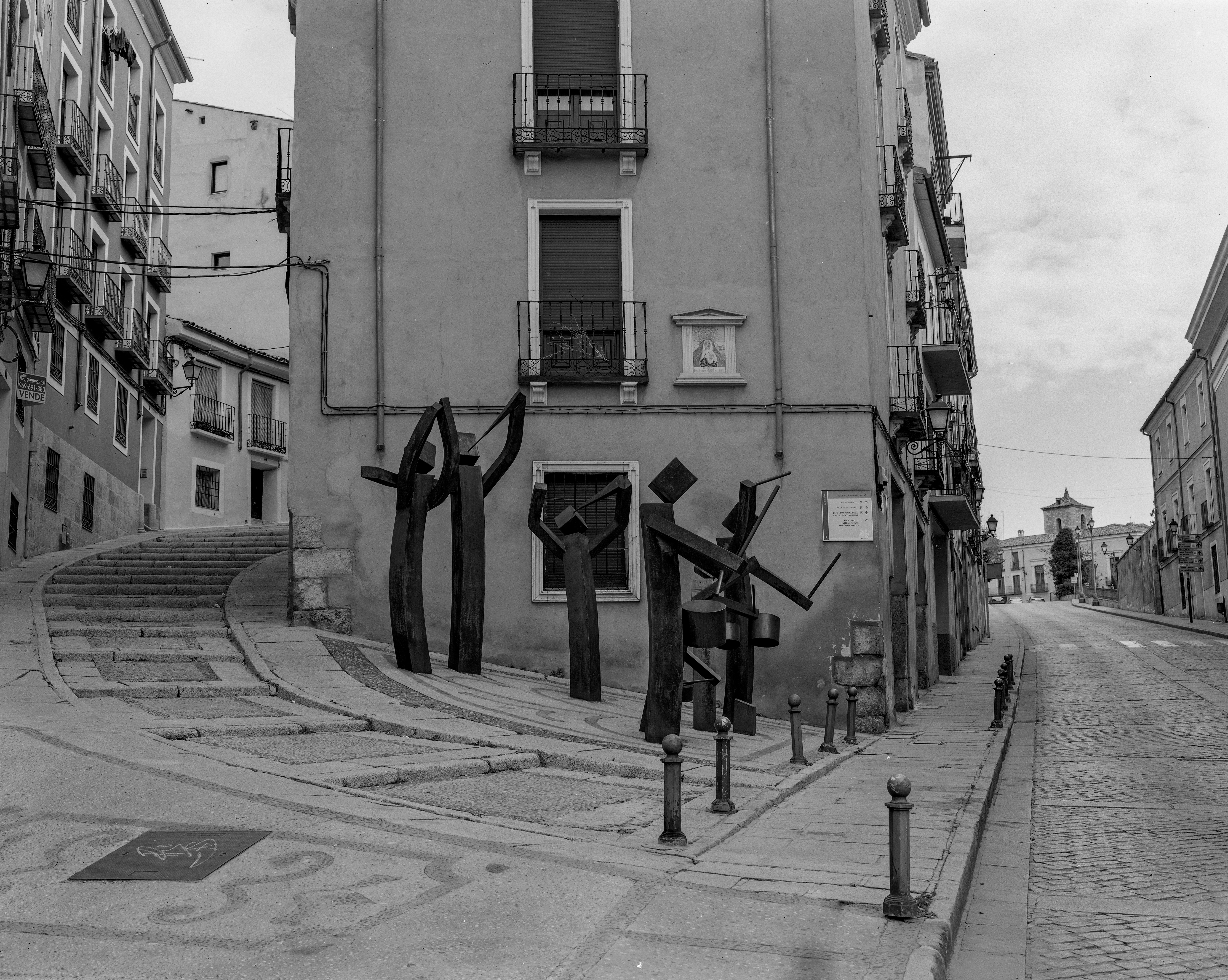 Mañana de paseo fotográfico por la bellísima ciudad de Cuenca. Me quedé con ganas de más pero lo cierto es que sólo llevé 16 placas. Aunque Foma 100 no lleva mucha plata, jejeje, las placas “pesan” como cualquier pata negra cuando van cargadas en sus chasis … 8 en total. Mañana de estreno. Sí, un estupendo Manfrotto 055 de aluminio que, acompañado de su rótula Manfrotto 410 superaban los 3,5 kilos de peso. Sarna con gusto …