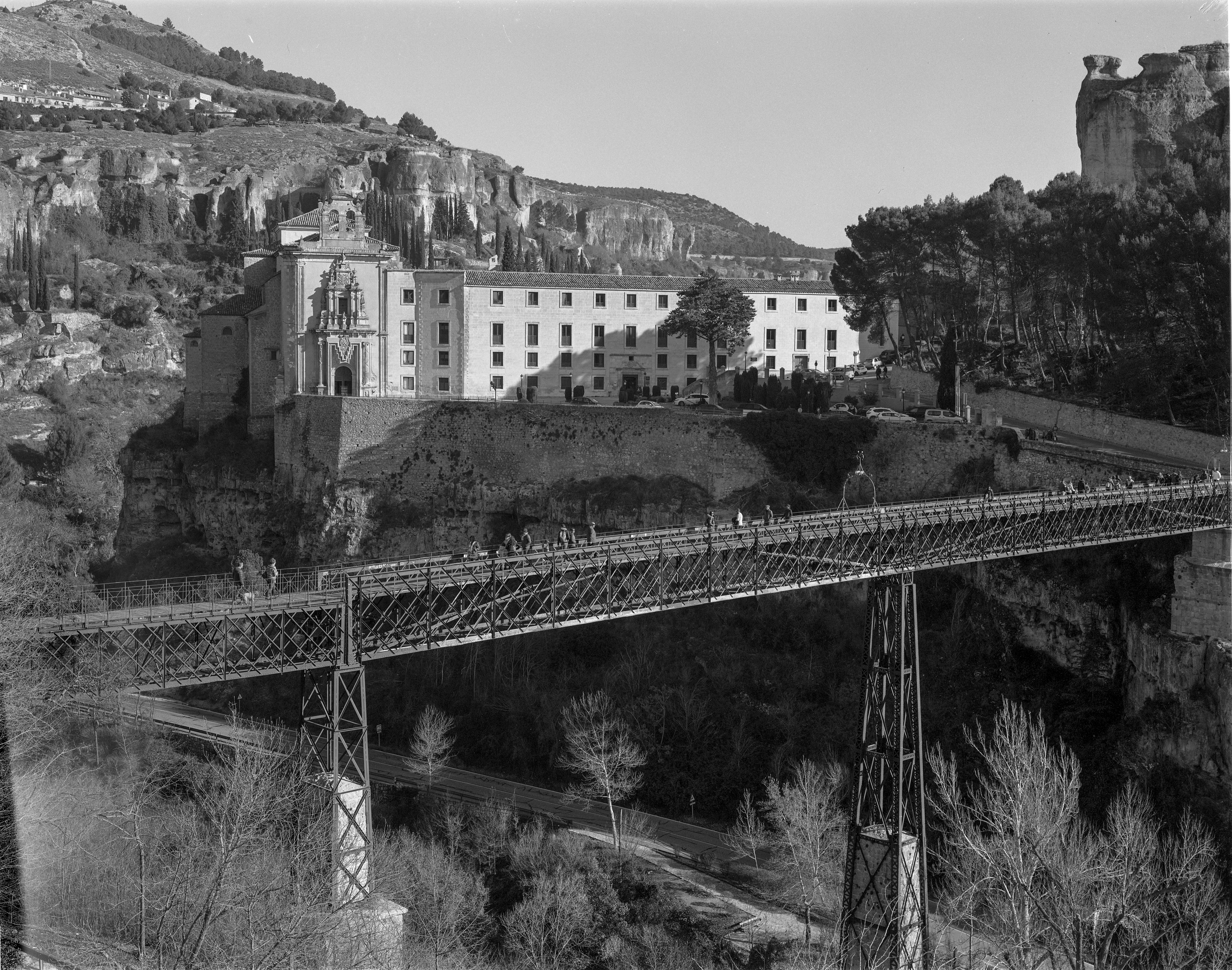 Siguiente parada bajo las mismísimas Casas Colgadas, la imagen más reconocible de la ciudad. Pero la que yo buscaba era la del Puente de San Pablo, el ingenio que une el casco viejo de la ciudad con el no menos vetusto convento de San Pablo, ahora convertido en Parador. Para esta toma desmonté el 65mm para usar el más adecuado Nikkor-W 150/5.6.