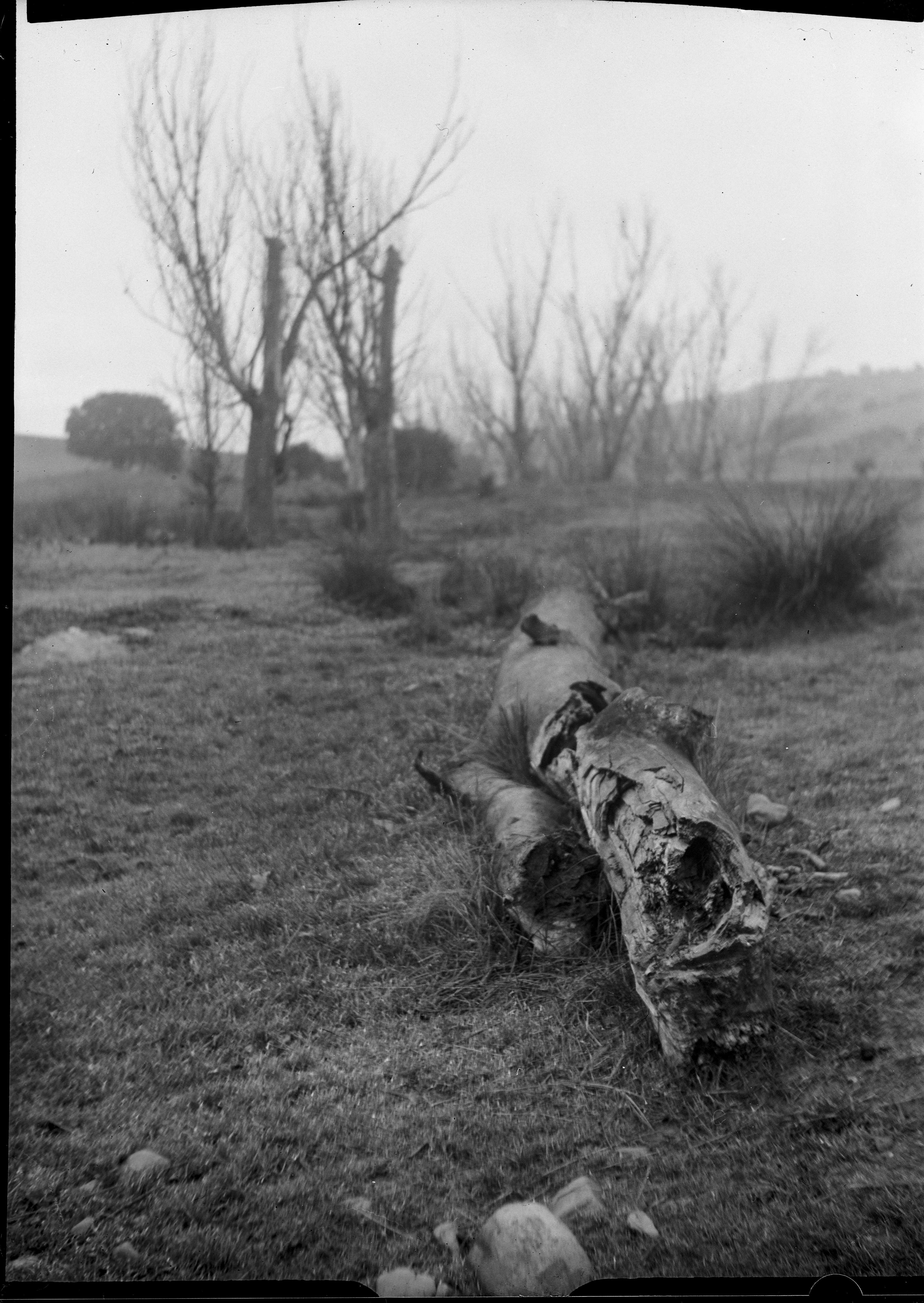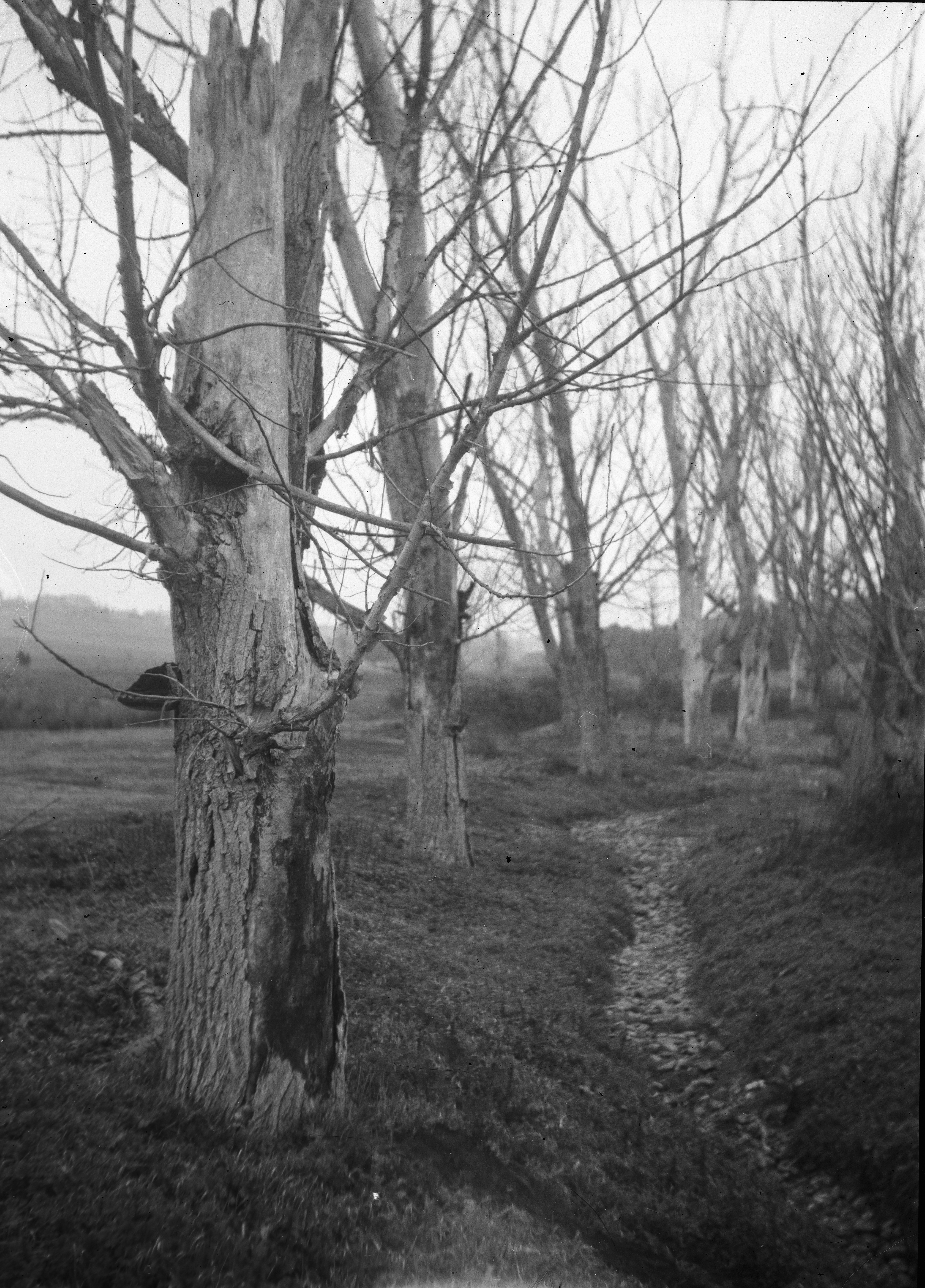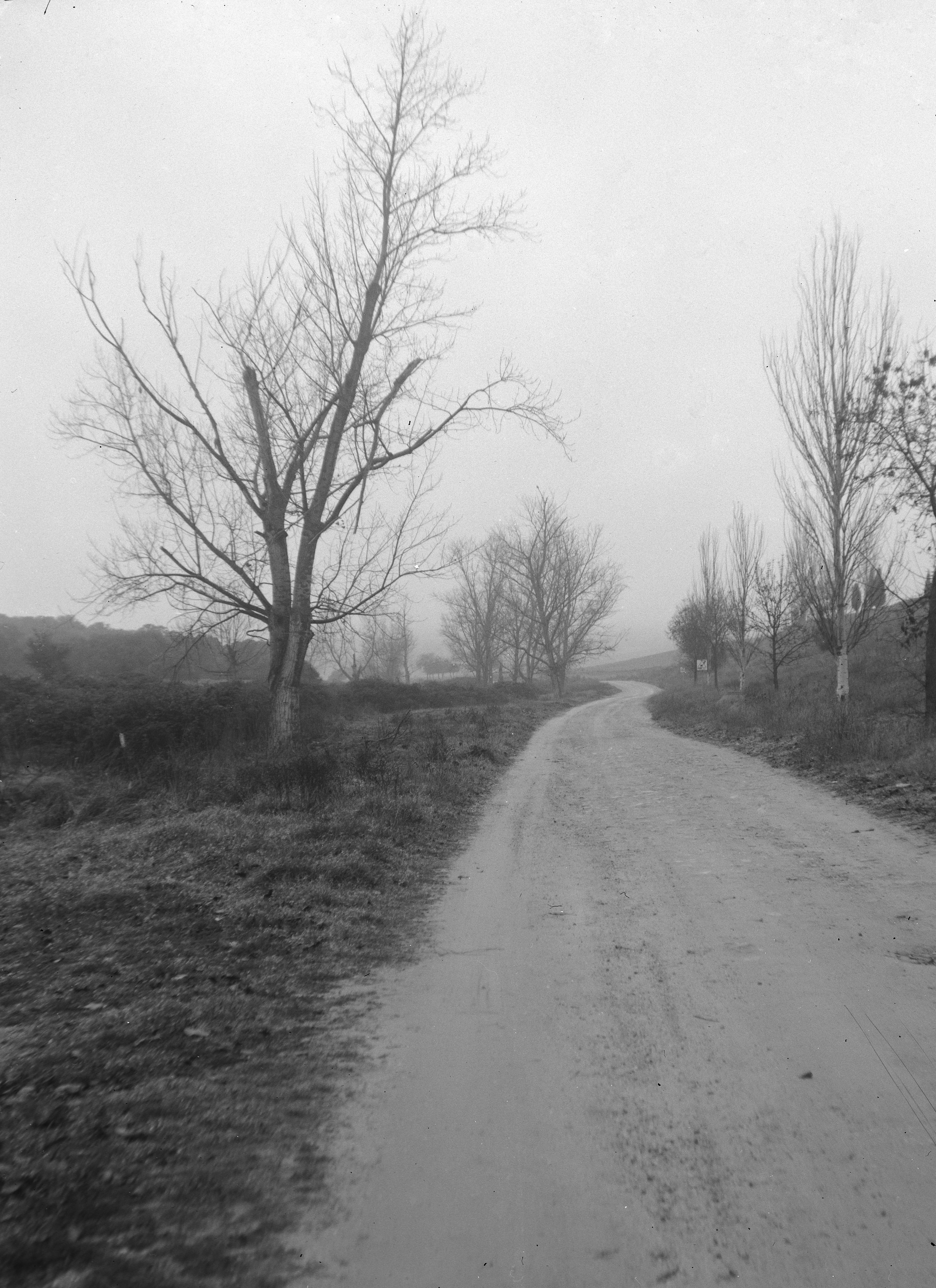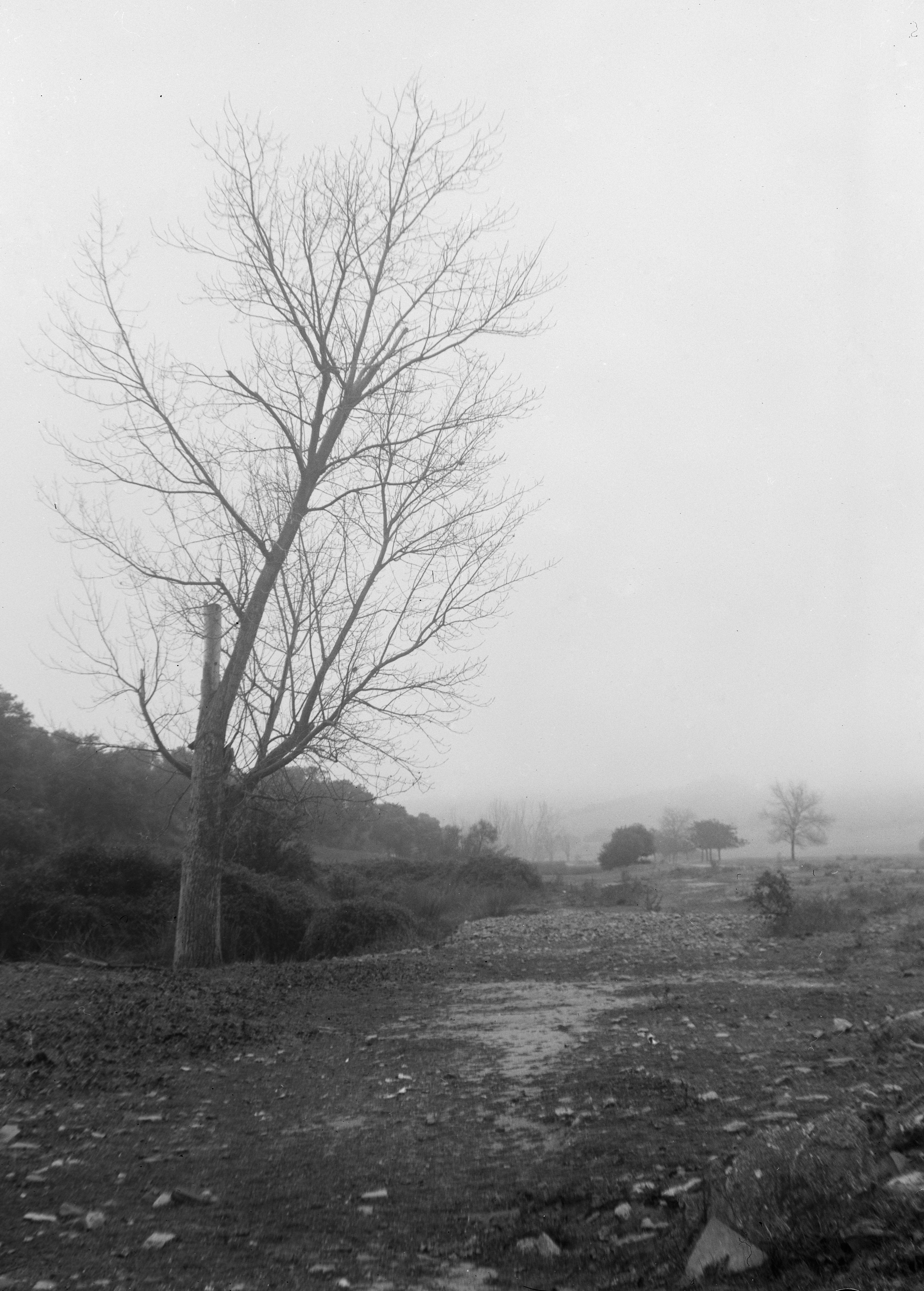 Paseo de invierno. Al menos de tiempo invernal 😉 Una niebla ideal para fotografiar árboles desnudos. Lamentablemente cuando planté el trípode comenzaba a levantar. Llevé la pseudo Welta 9×12 y sus 6 chasis cargados con Foma 100.