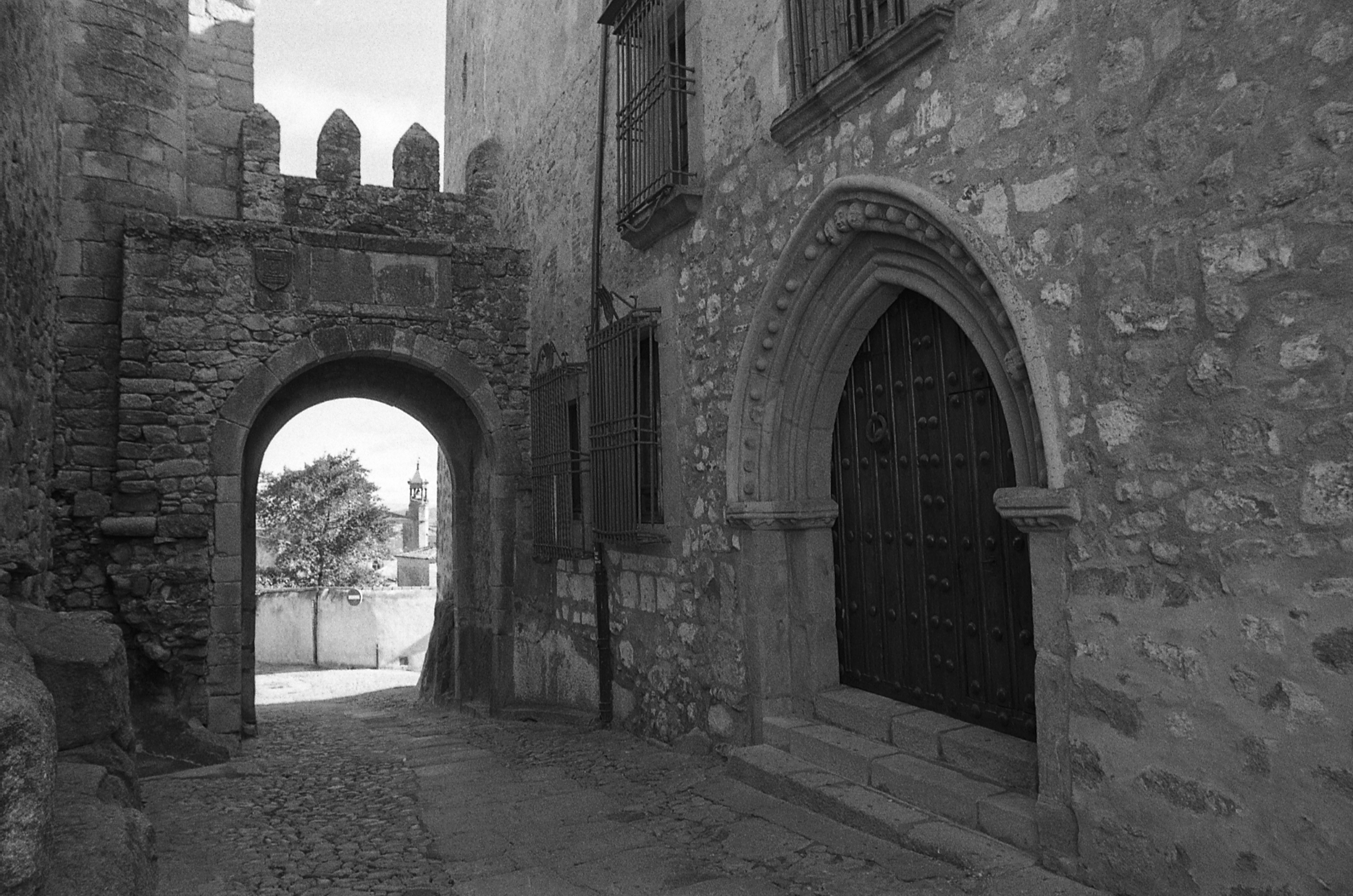 Con la Pentax tiré Ilford HP5 y FP4 cuando se agotó el primero. Con Nikon un carrete de AgfaPhoto APX 400 … que me ha gustado mucho más que el que hice en Madrid días más tarde. En realidad, no es tanto preferencia porque los grises de Madrid van ganando puntos, no, es más bien que los extremeños se aproximan más al contraste que observo en fotos de otros y que tanto me apetece, aunque …