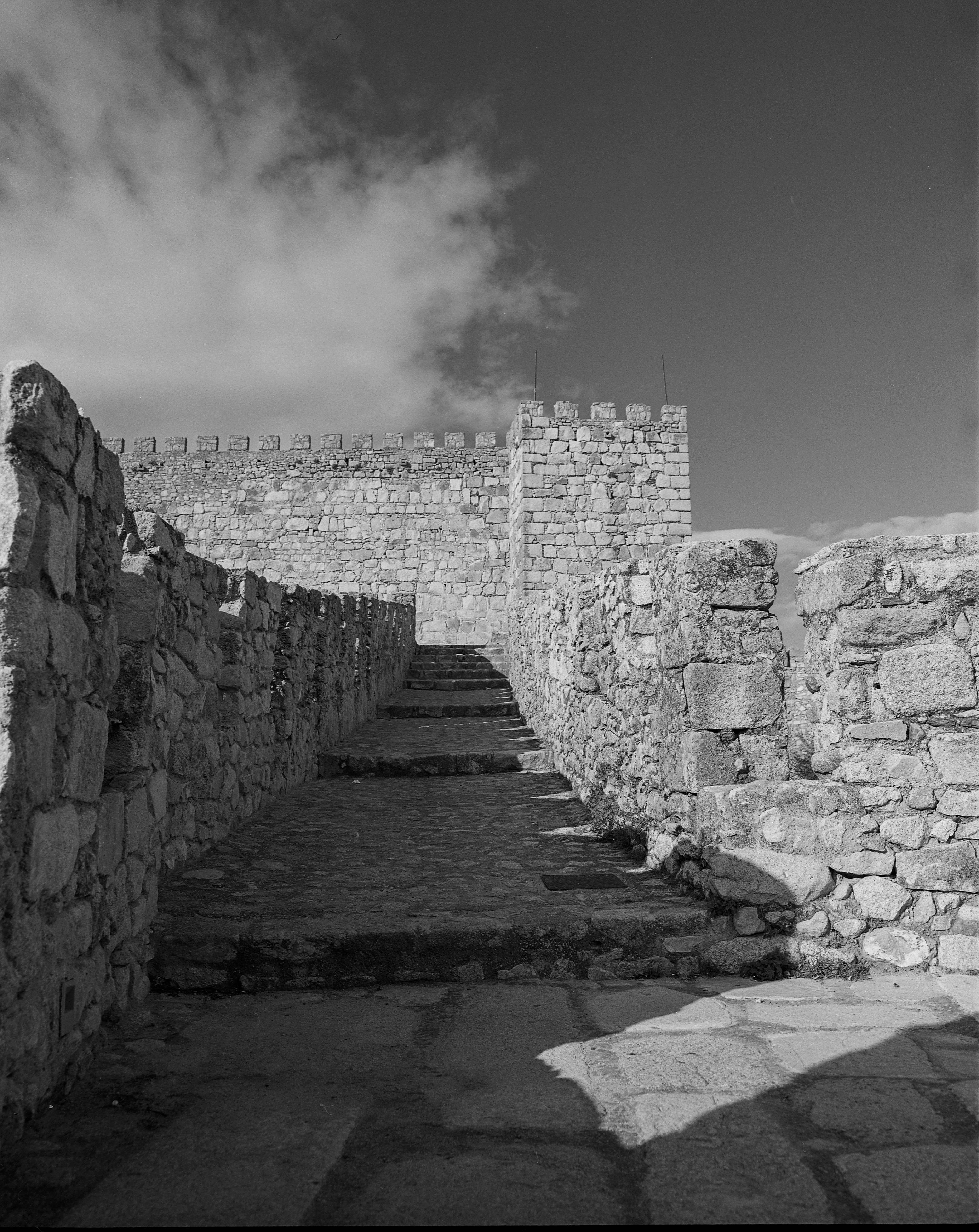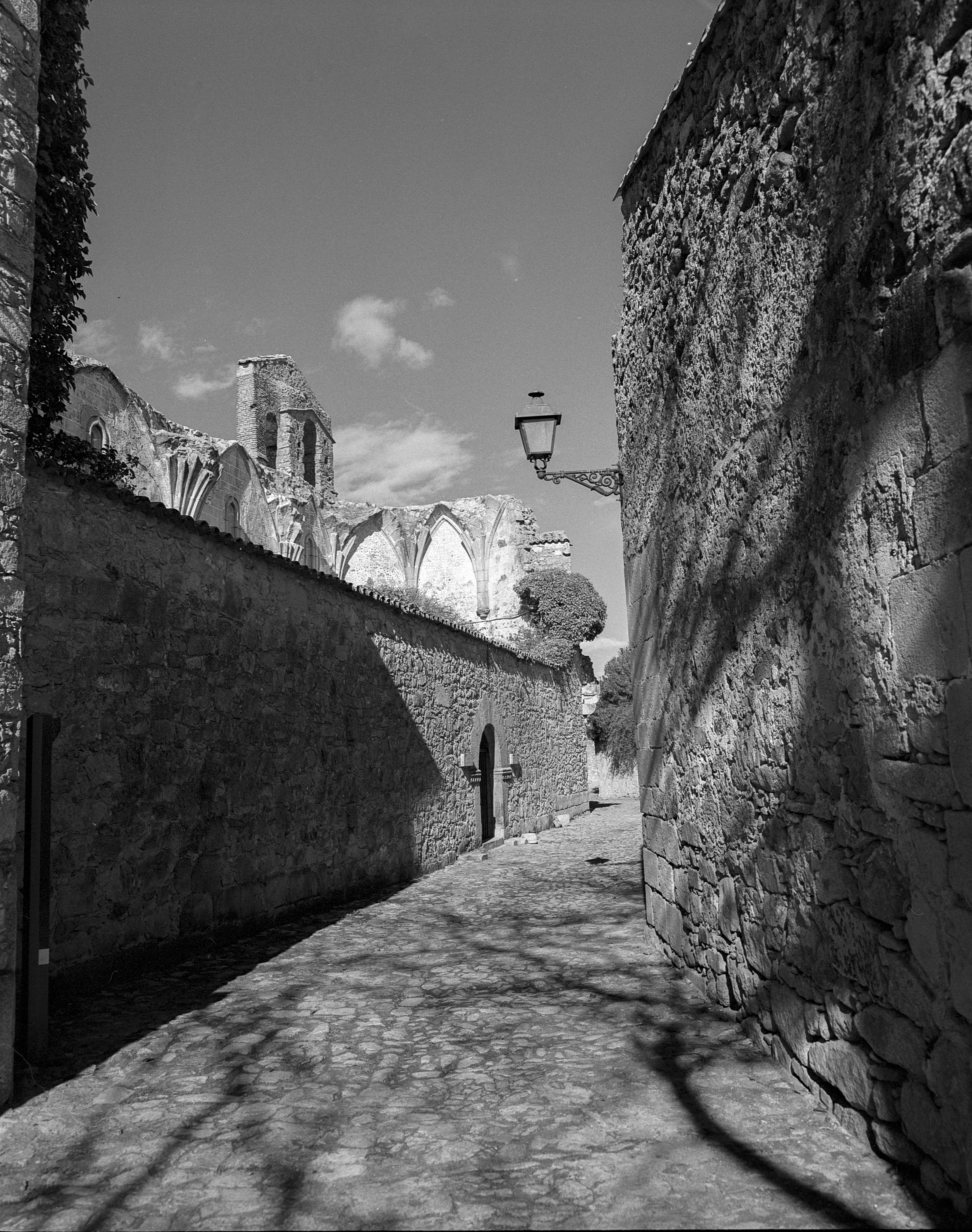 Media vuelta, por las calles de piedra y muros empedrados a los que sienta fenomenal el FP4+ y el filtro amarillo.