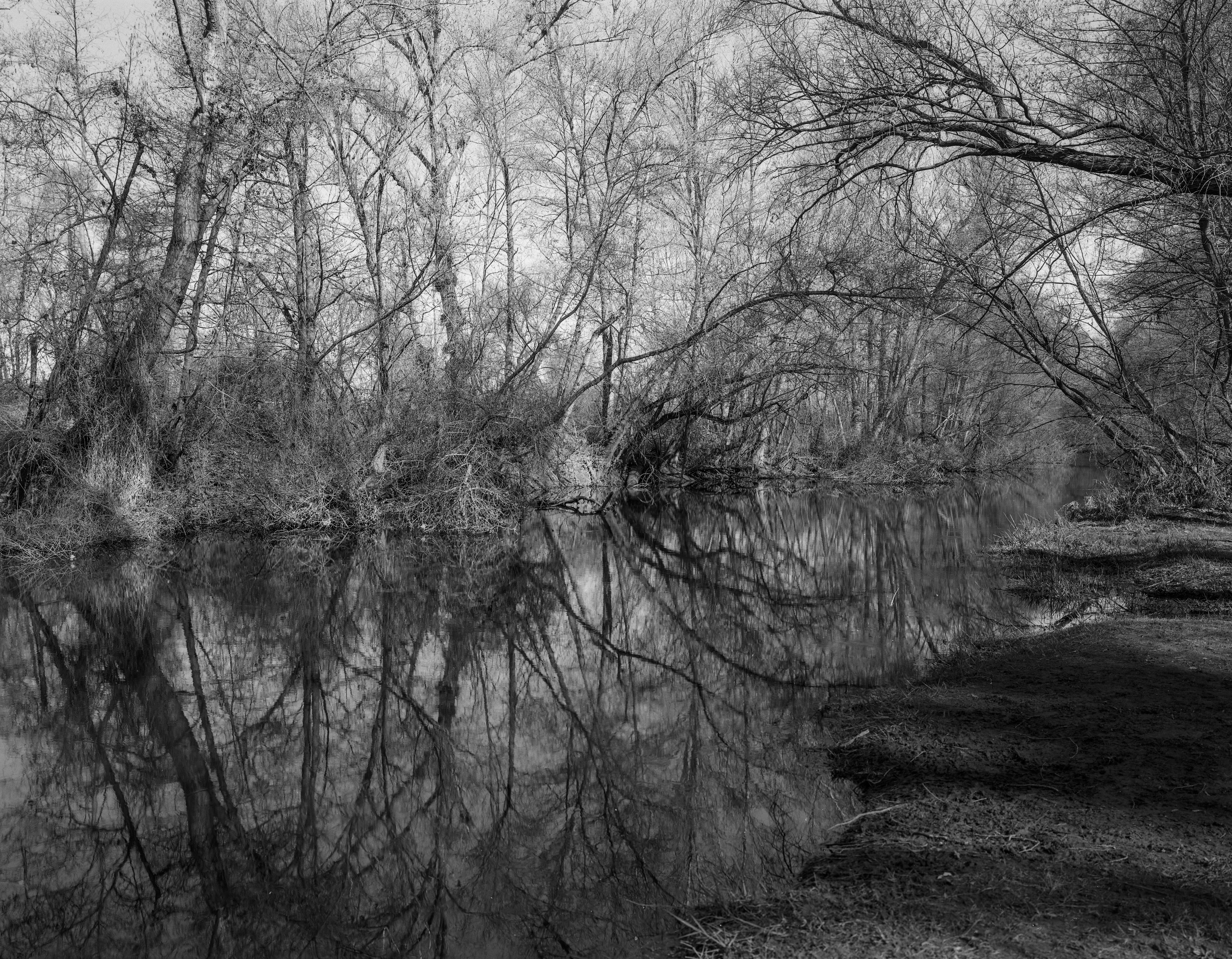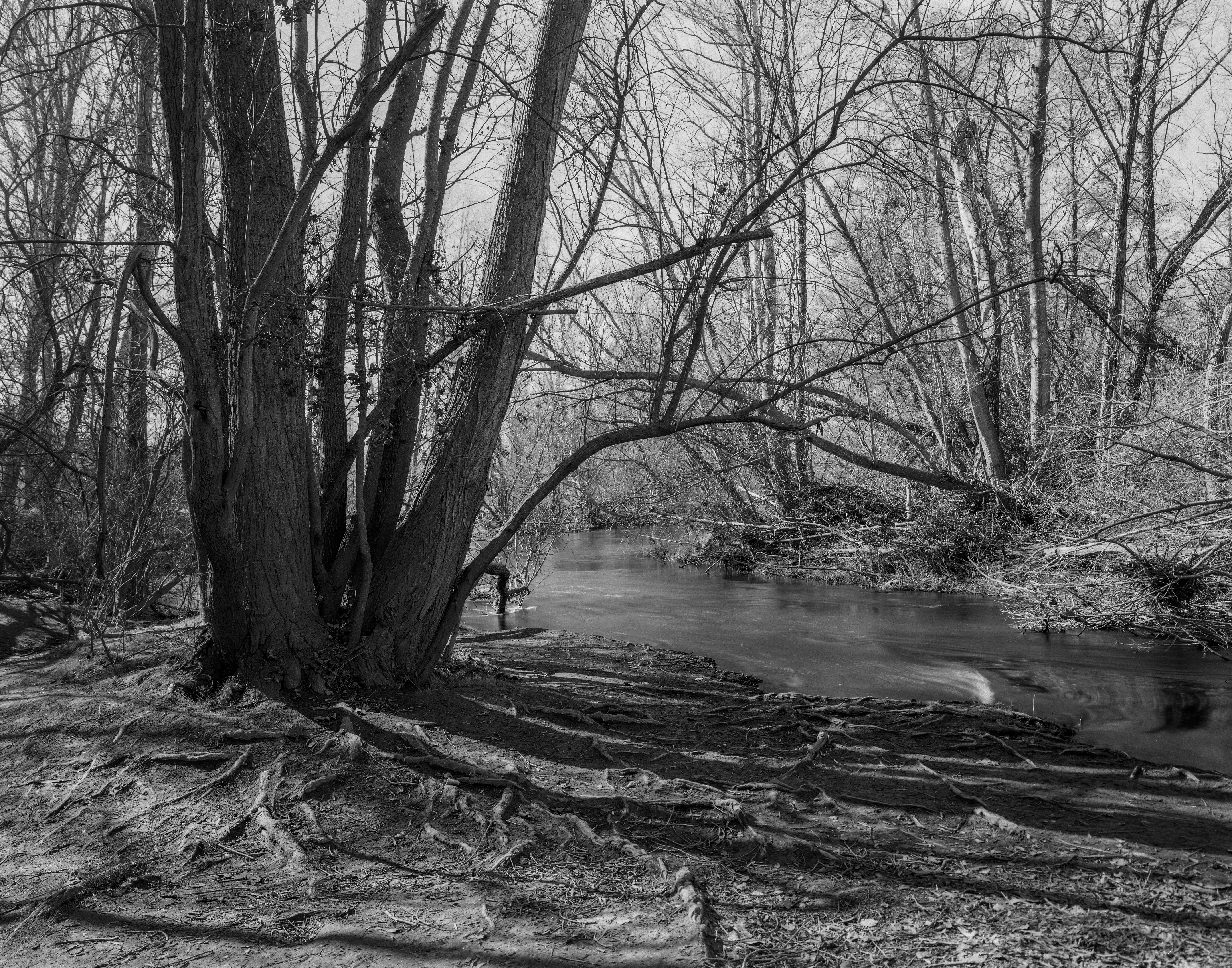… se llevan el limo y la tierra de las orillas, destapando las someras raíces de los árboles más cercanos …