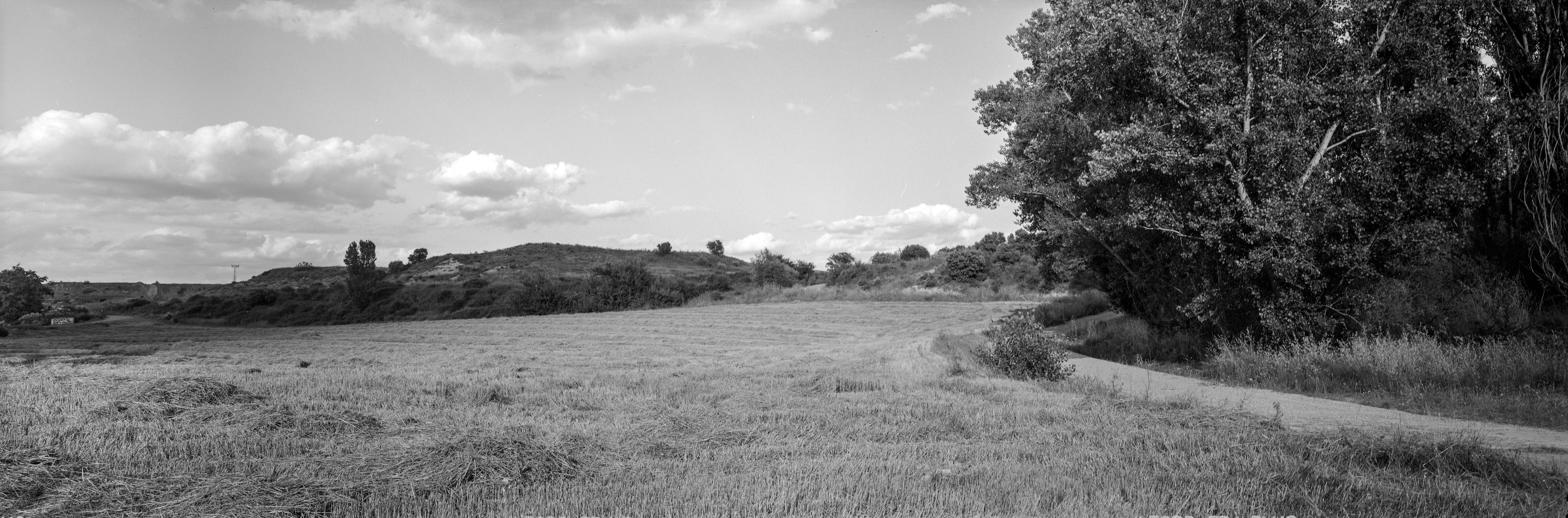 Cambio de entorno y cambio de película para estas últimas cuatro fotografías. Riberas del arroyo de Torote. Ilford FP4+, de nuevo con filtro polarizador. Tarde de nubes erráticas, de esas a las que hay que pedir la vez para conservar una exposición correcta, la deseada. Escasa herrumbre en los cielos, eso sí. Faltaban al menos dos horas para la hora mágica.