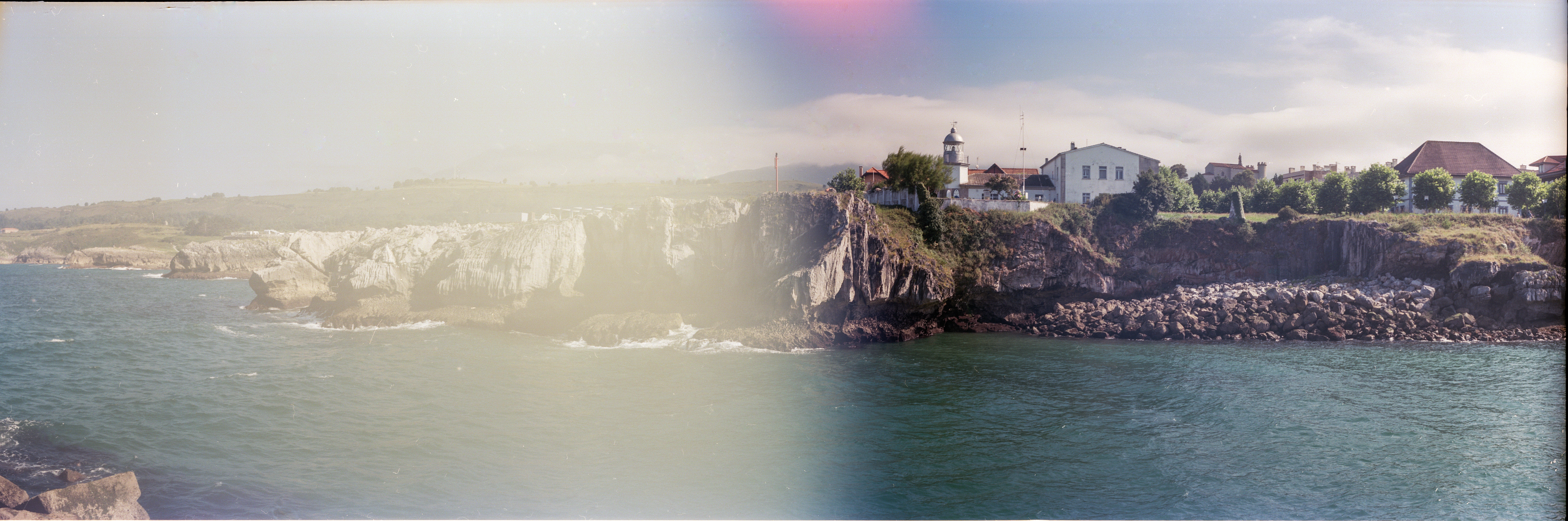 Finalmente, por la tarde, decidimos hacer más kilómetros y visitar Ribadesella. Una tarde de luz preciosa. Esta fotografía está algo recortada, de nuevo un problema de velado; y, como se observa, pelín deformada (no usé el nivel). Además, no quité todo el polvillo … pero, oye, qué color 🙂