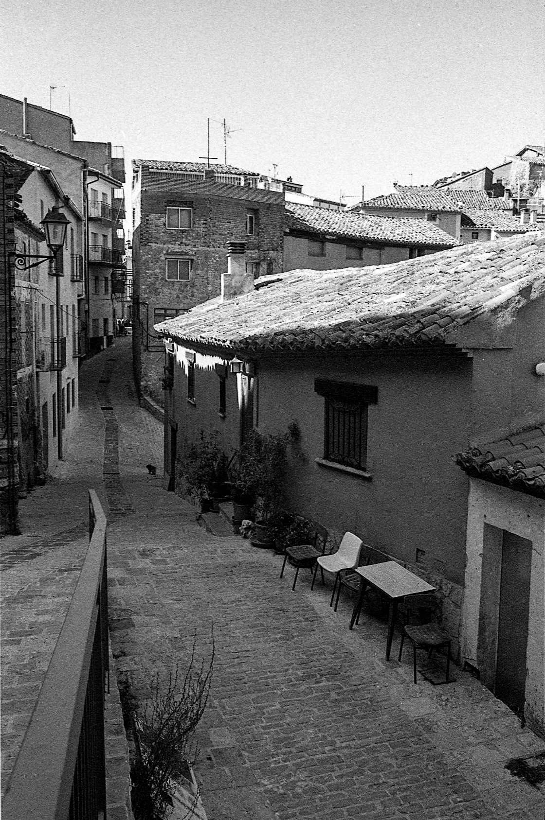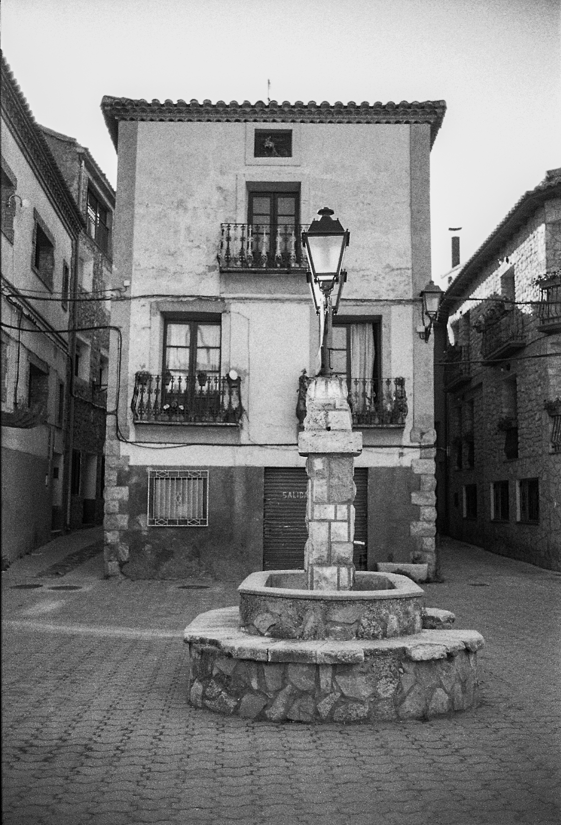 La película es HP5 (tenía que gastar un carrete que empecé en Atienza meses antes, ay, confinamiento) que he revelado con FX-39 en dilución 1+9 (la recomendada). Muy satisfecho con la combinación, que ofrece un contraste muy atractivo, buena latitud y un grano suave, aunque, la verdad, aún esperaba menos.