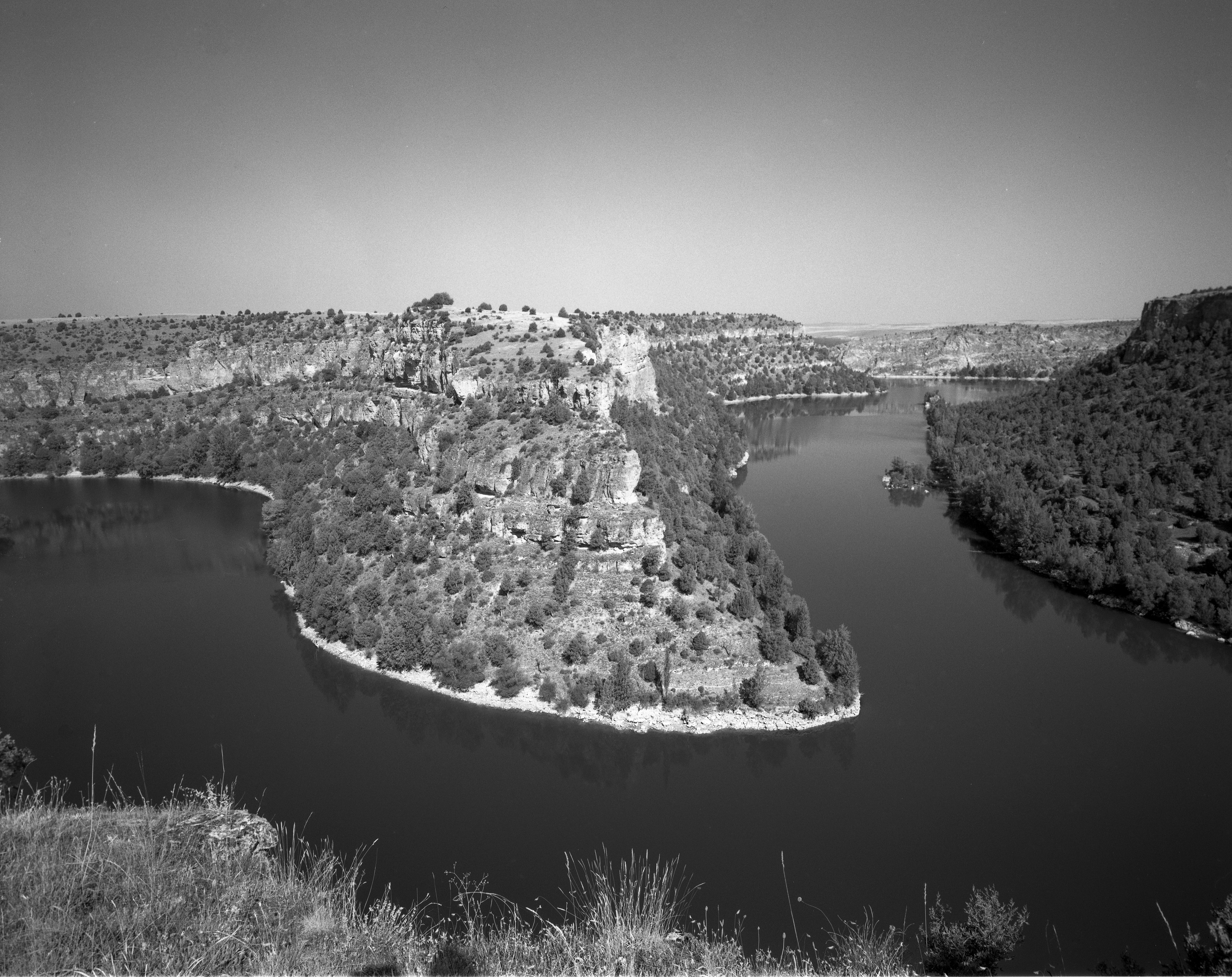 Primera foto de la península de San Frutos, je, a la que aprieta el río en su encañonamiento acelerado. Con Nikkor-SW 90/4.5 y un polarizador.