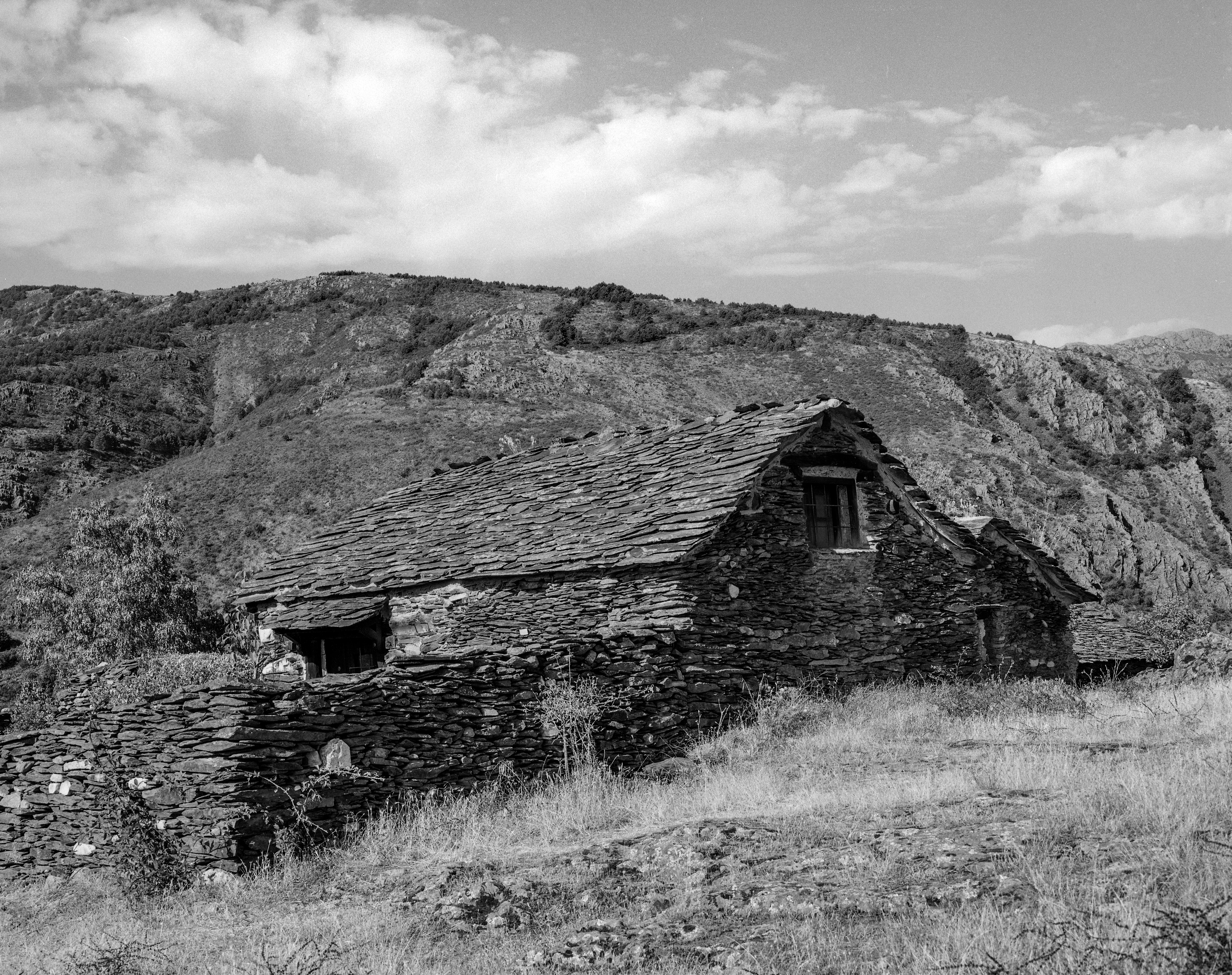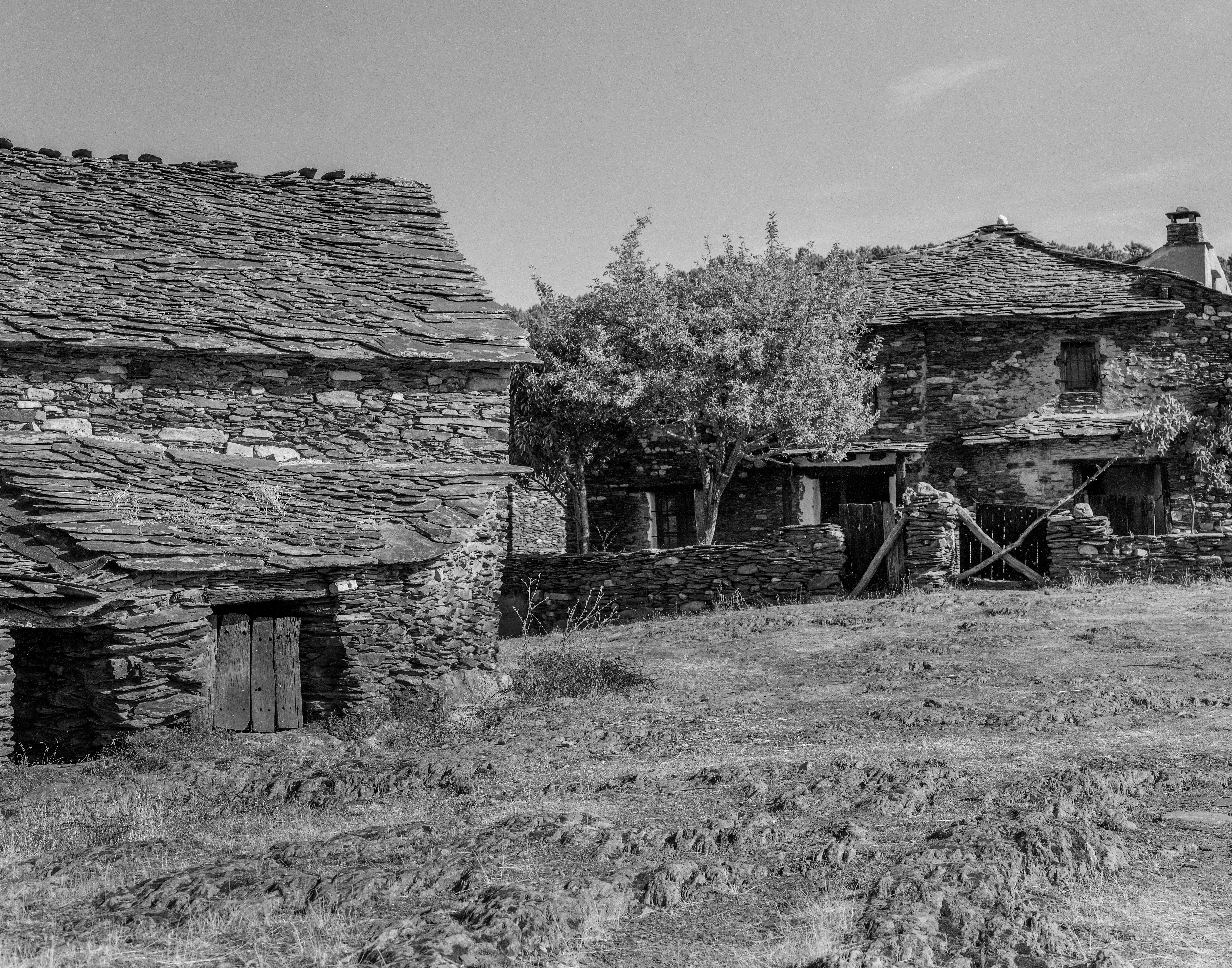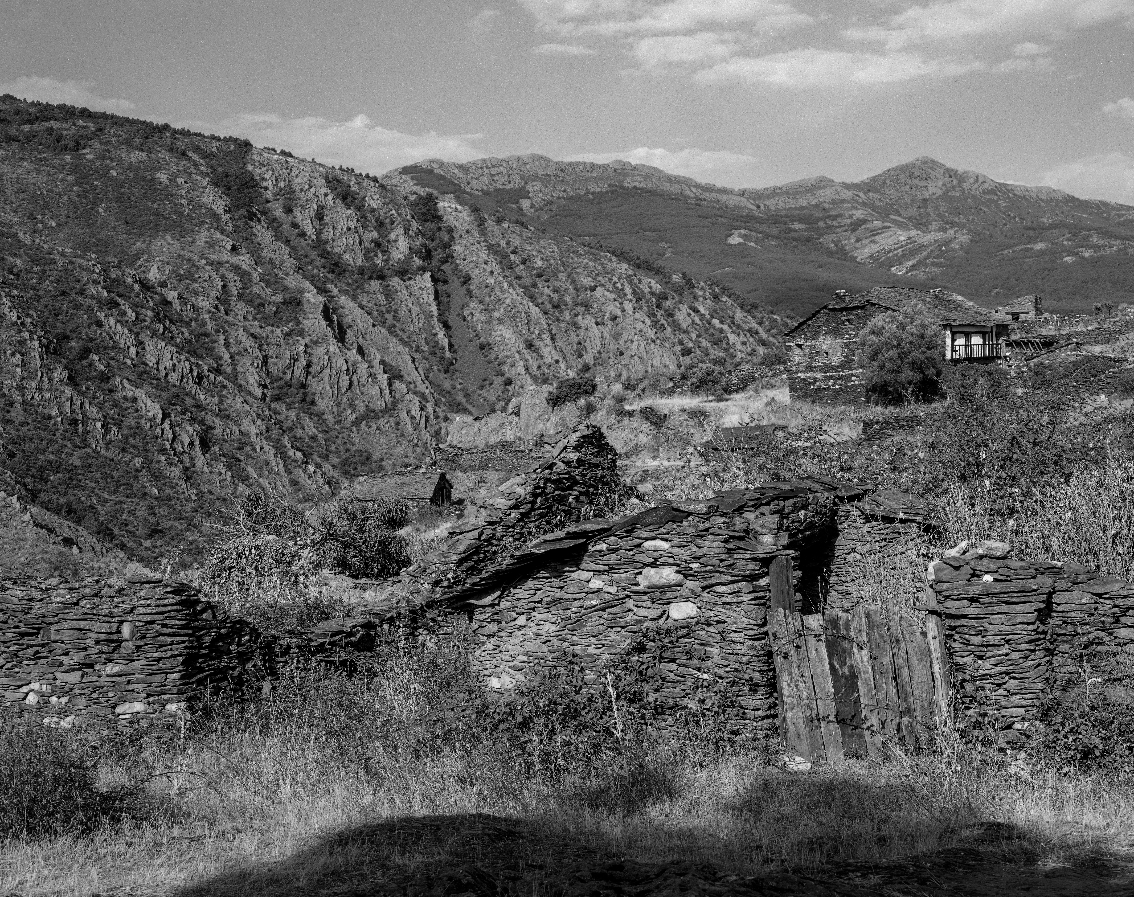 Salimos de la plaza dejando atrás las escuelas del pueblo, que apenas si se sostienen en pie, para visitar las cortes de ganado y pajares que servían, claro, para guardar cochinos y forraje. De nuevo Nikkor-W 150/5.6: