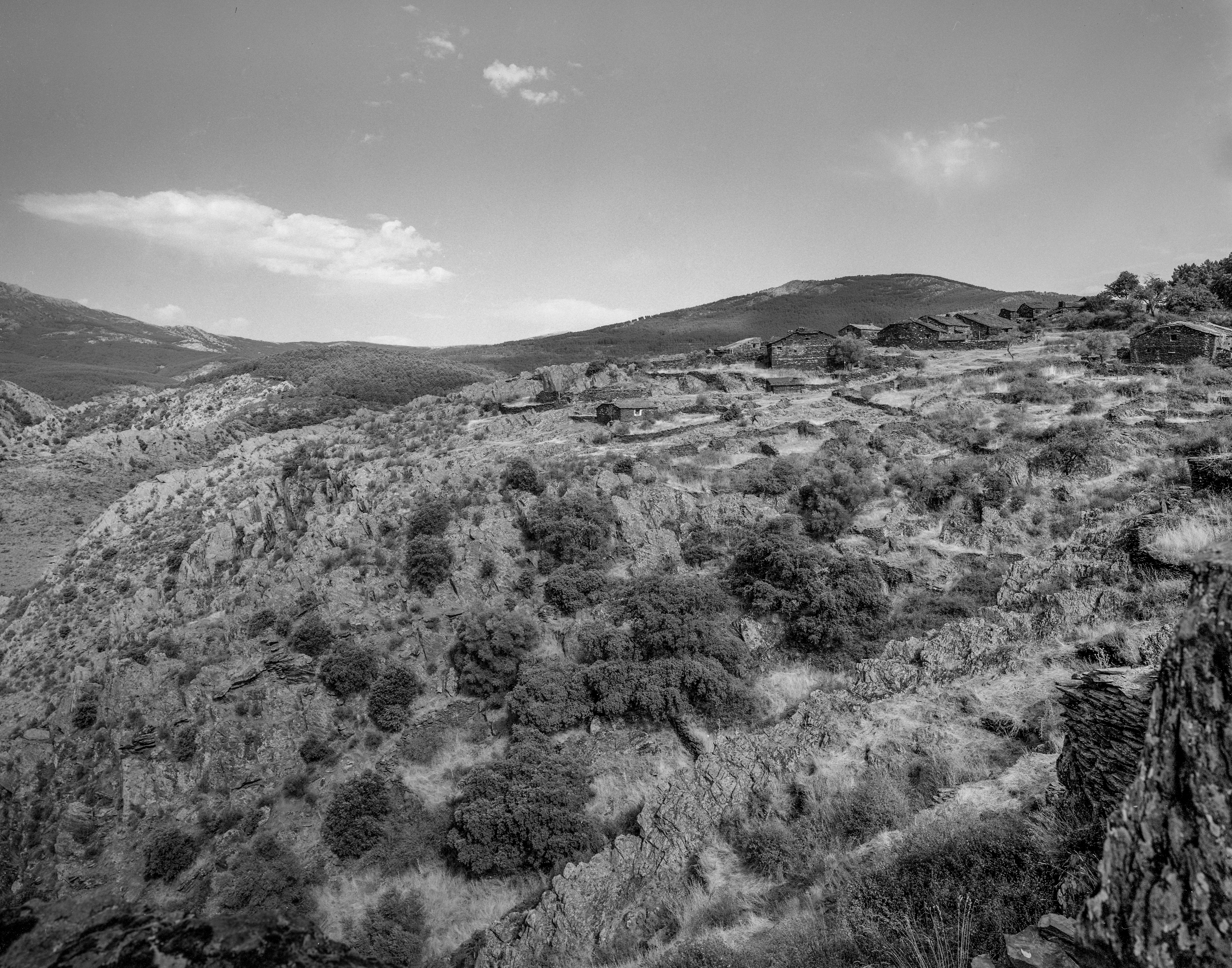 Ya de regreso al barrio de Arriba encontramos las «casillas«, corrales para guardar, esta vez, ganado cabrío. Al fondo podemos distinguir la Casa de los Balcones. Mucho más al fondo La Tornera y Pinhierro. De nuevo Nikkor-W 150/5.6: