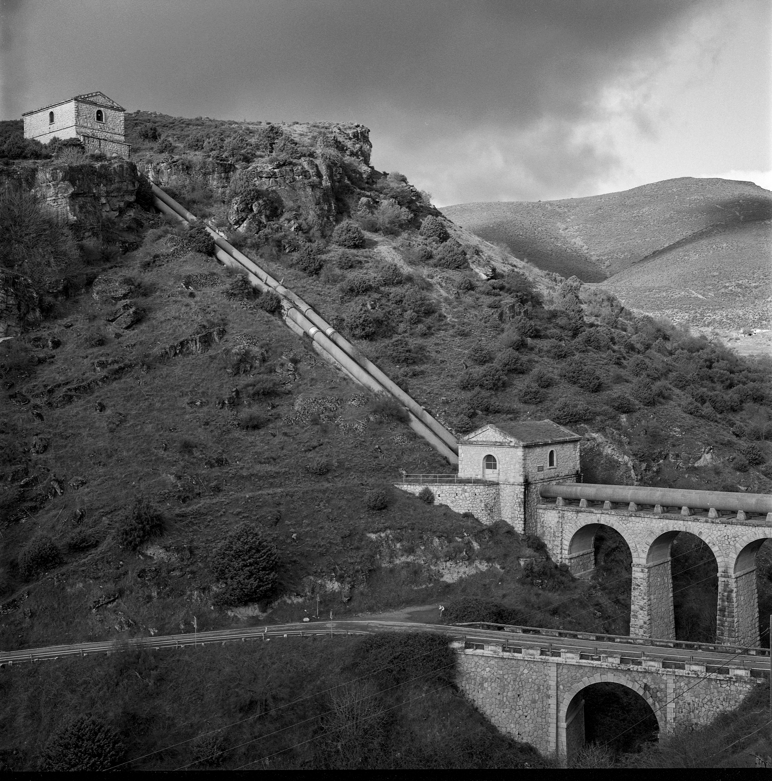 Almenara de salida y tubos sobre el pontón que salva el barranco.