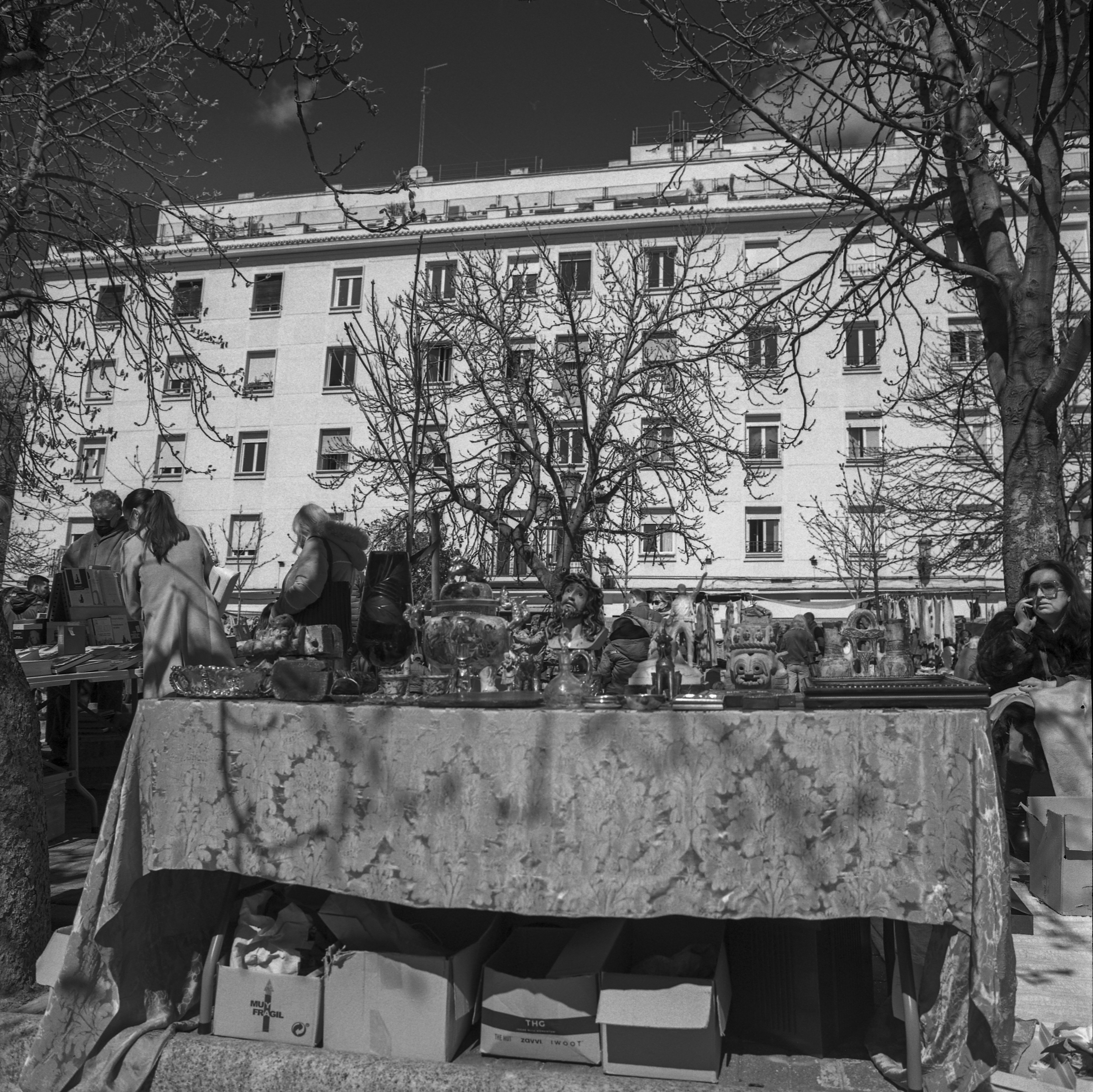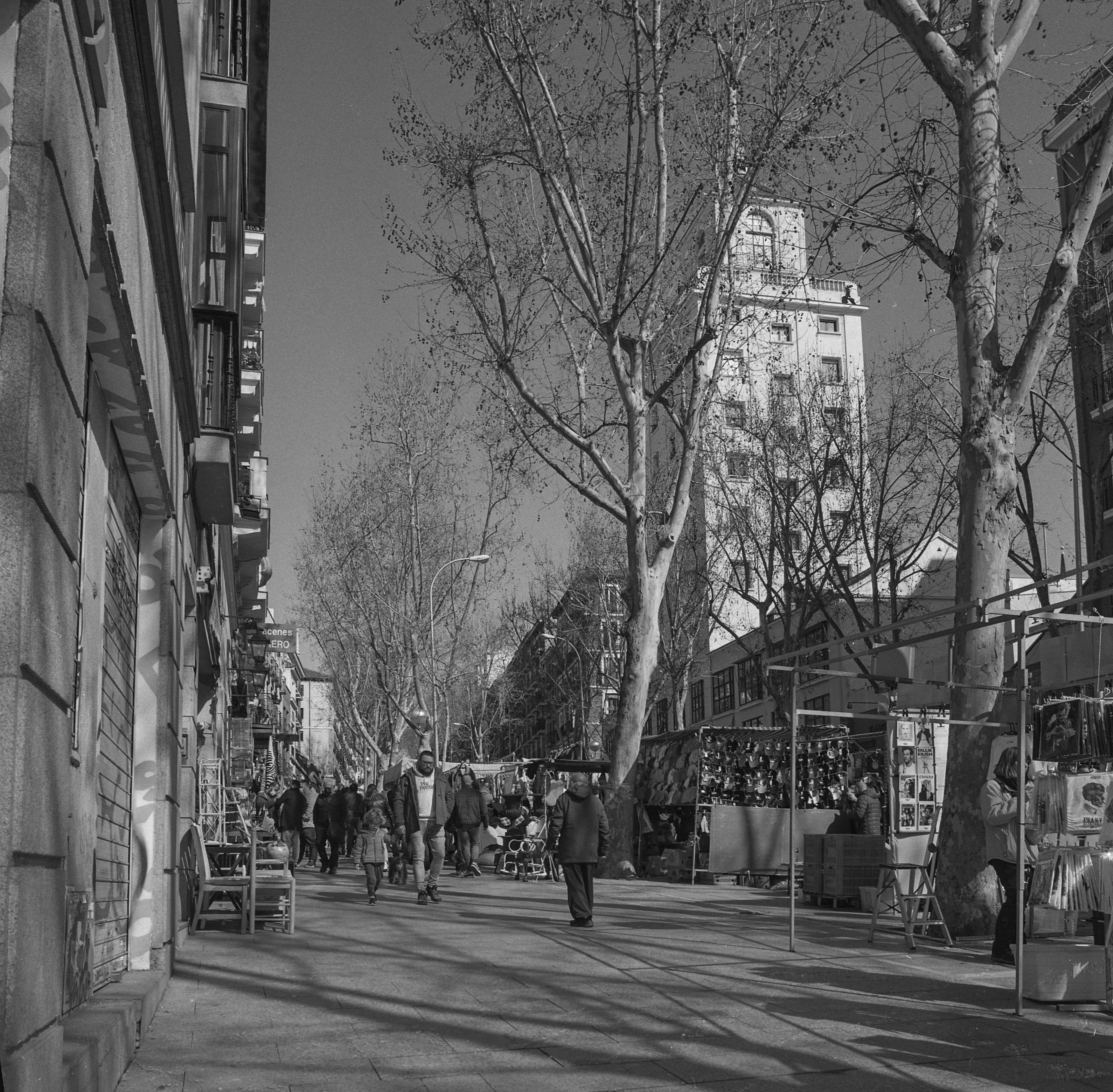 Ay, entre tanto he perdido de vista a Rosa y Violeta que, ellas sí, han venido en busca de gangas (y vaya si las encontraron). Así que acudo a su encuentro en la Plaza del General Vara del Rey que, pequeña digresión en esta entrada dedicada a las Galerías Piquer, es un pedacito pequeño, modesto, aunque más lustroso del pasado Rastro de traperos y chamalireros (Rollei Retro 400s)…