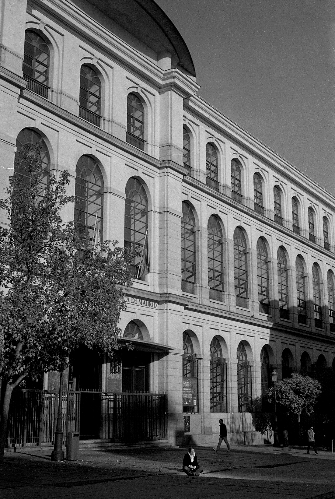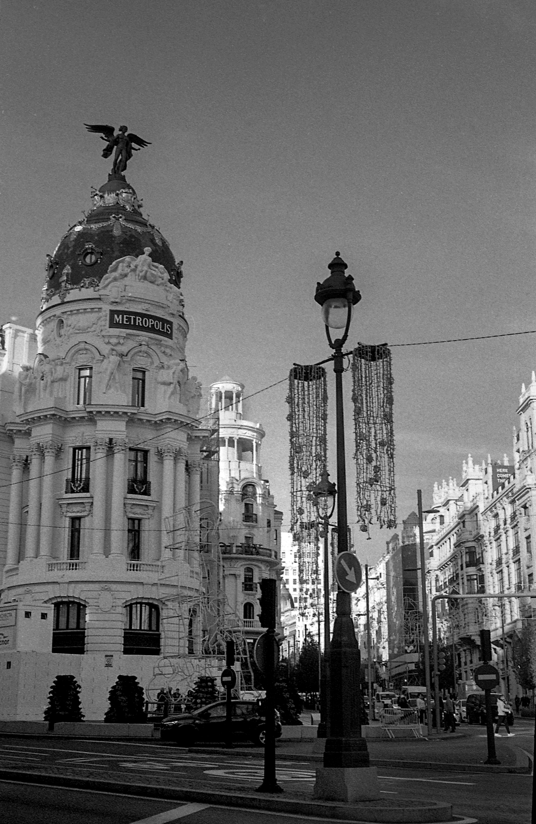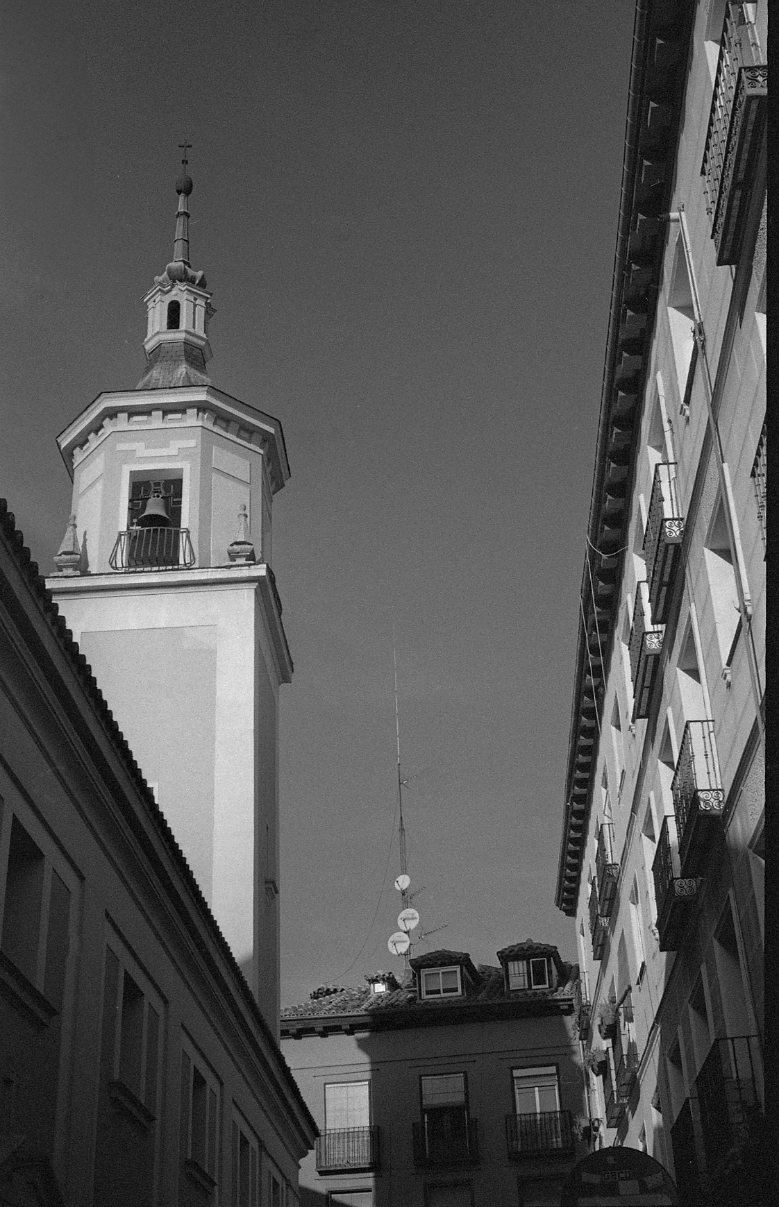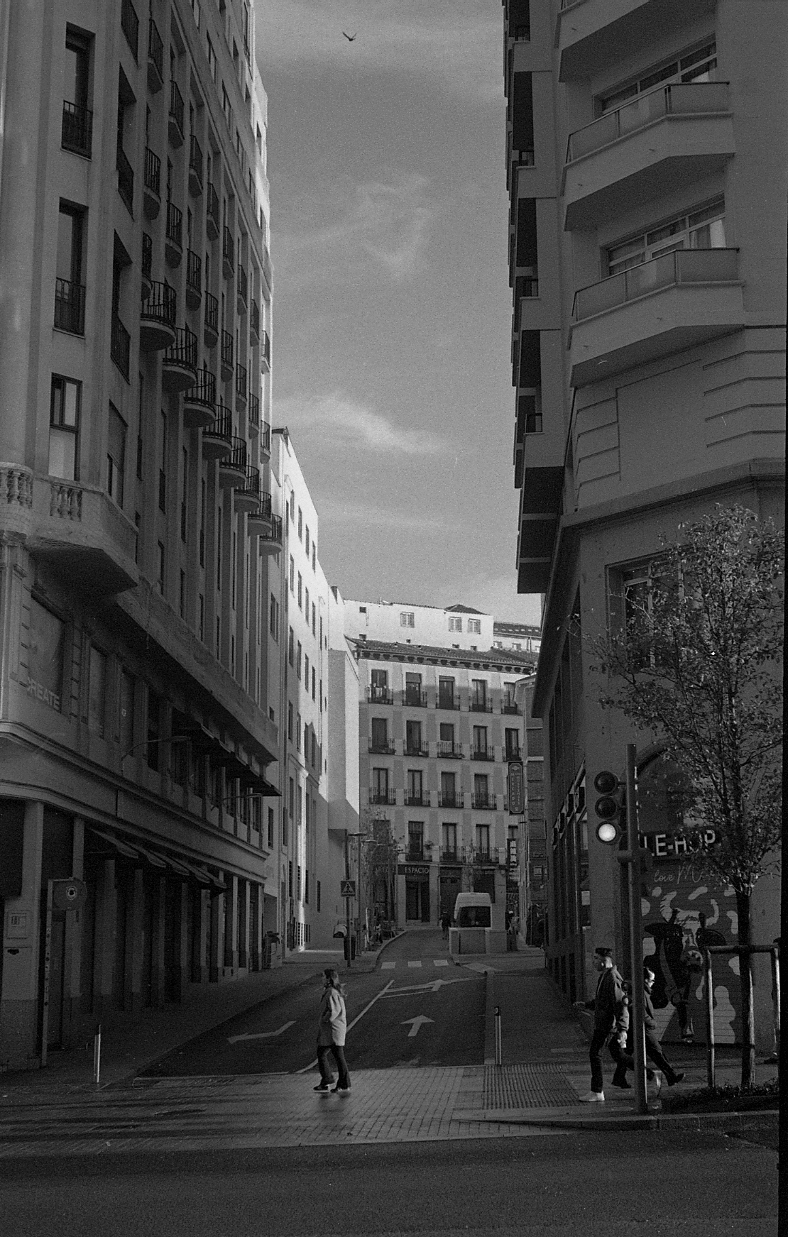 Llevo tiempo queriendo, al menos, probarla, pero siempre encuentro una excusa para tirar de Nikon o, vaya, de Leica, si de telemétricas se trata. Y es que la Vito es una cámara … sin telémetro, jeje, una de esas limitaciones a las que me refería 😉 Ya se ve que, puestos a comparar, las limitaciones de esta cámara setentona se acumulan, en tiempos en los que, apenas cada dos años, nuestras modernidades digitales añaden una mejora (siempre insuperable) a su panoplia de maravillas. En fin. En serio, la única limitación «molesta» de la cámara me ha parecido coyuntural. Culpa mía por haber cargado un HP5 en una cámara que ofrece un 1/300 de velocidad máxima. Peor, jajaja, como agravante, encima, la he estrenado en un día de esos en los que Madrid nos regala una luz magnífica. Nada extraño, ciertamente, menos aún en otoño e invierno. En fin, que no llevar grisómetro tampoco es culpa de la Vito 😉