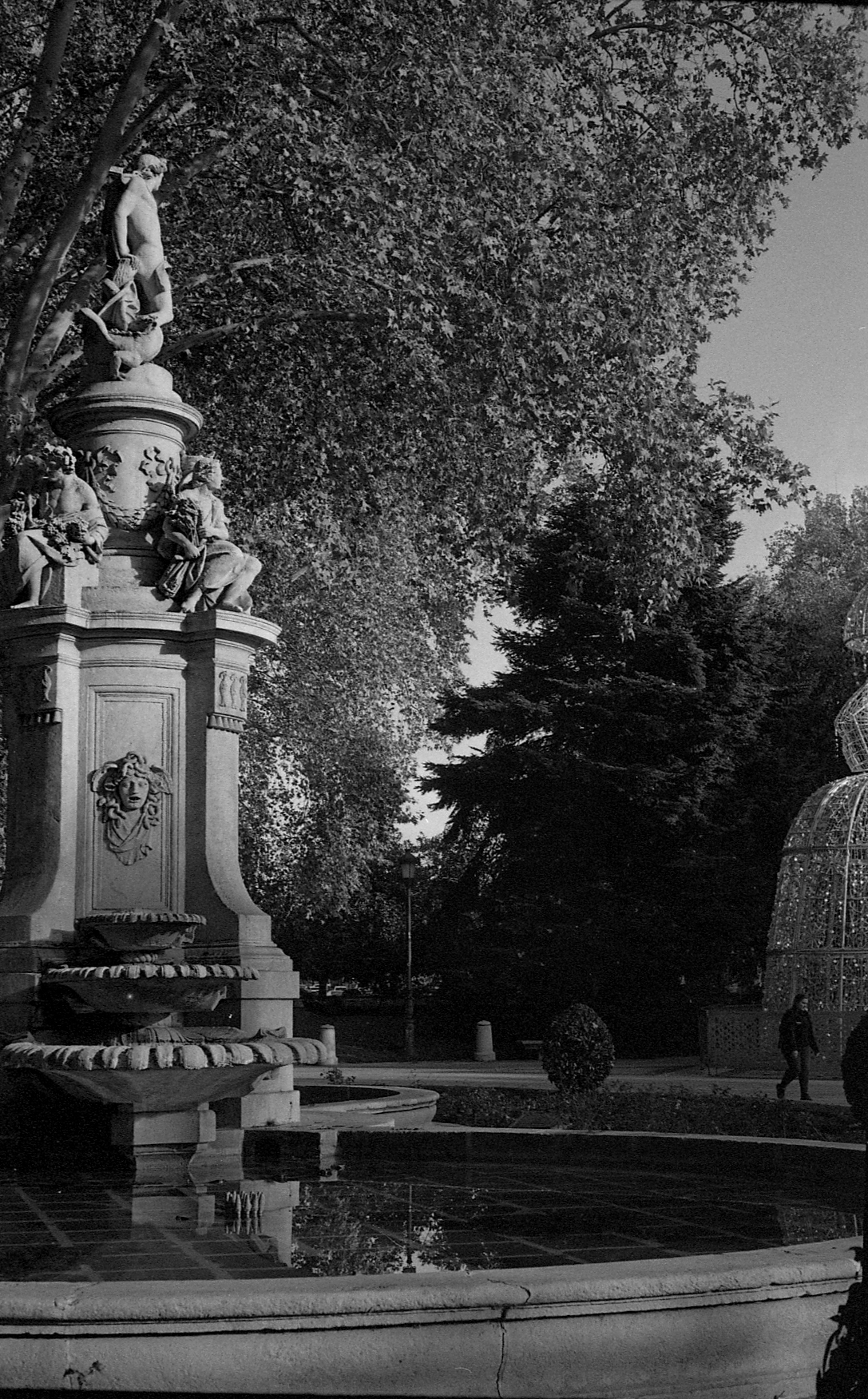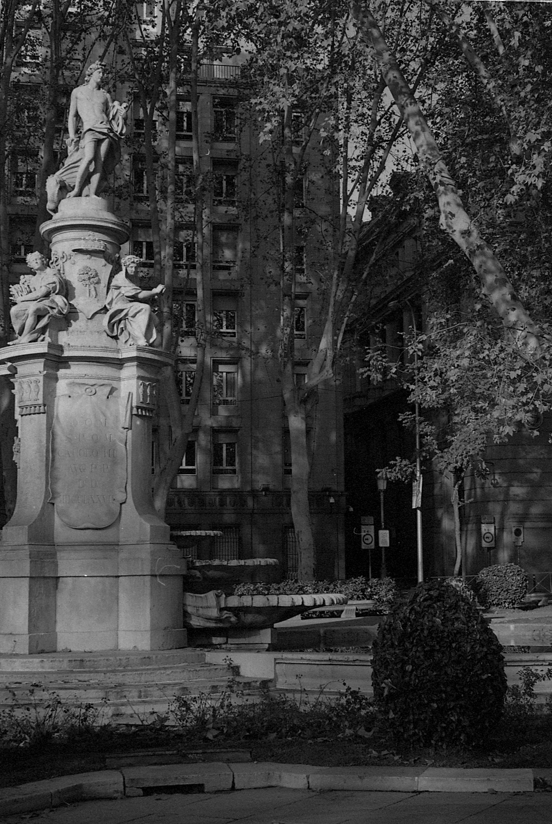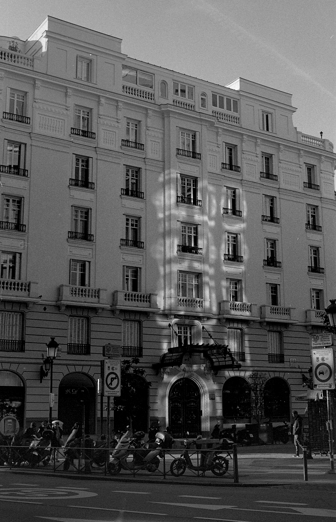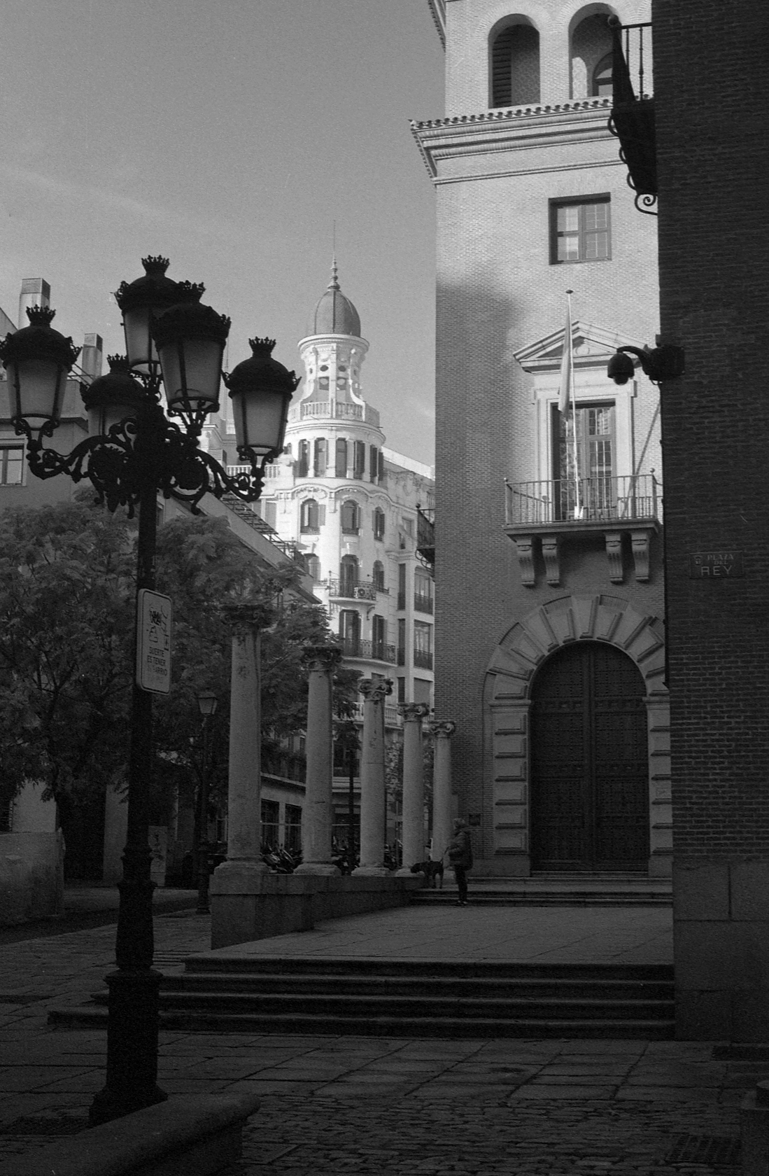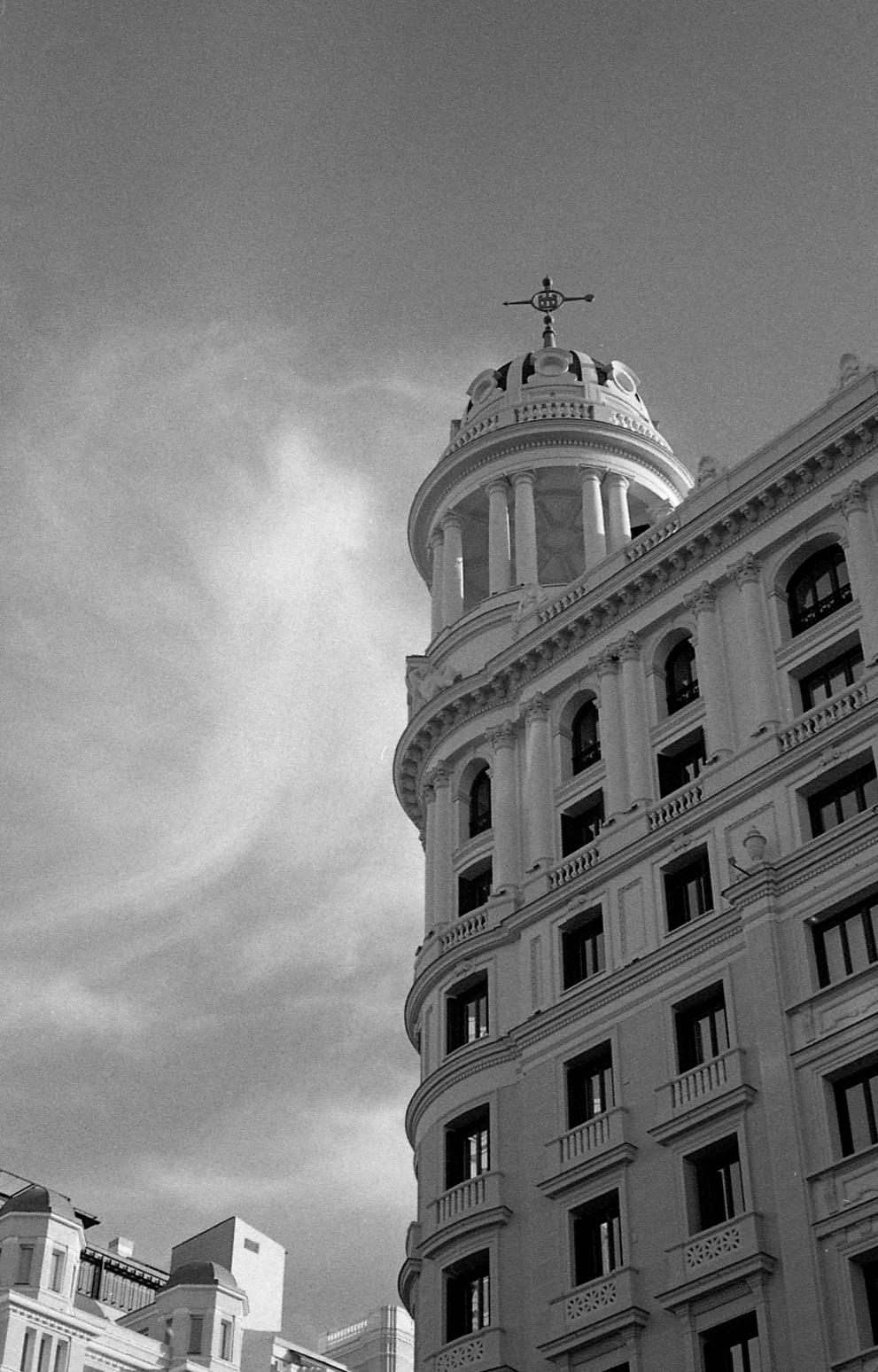 Llevo tiempo queriendo, al menos, probarla, pero siempre encuentro una excusa para tirar de Nikon o, vaya, de Leica, si de telemétricas se trata. Y es que la Vito es una cámara … sin telémetro, jeje, una de esas limitaciones a las que me refería 😉 Ya se ve que, puestos a comparar, las limitaciones de esta cámara setentona se acumulan, en tiempos en los que, apenas cada dos años, nuestras modernidades digitales añaden una mejora (siempre insuperable) a su panoplia de maravillas. En fin. En serio, la única limitación «molesta» de la cámara me ha parecido coyuntural. Culpa mía por haber cargado un HP5 en una cámara que ofrece un 1/300 de velocidad máxima. Peor, jajaja, como agravante, encima, la he estrenado en un día de esos en los que Madrid nos regala una luz magnífica. Nada extraño, ciertamente, menos aún en otoño e invierno. En fin, que no llevar grisómetro tampoco es culpa de la Vito 😉