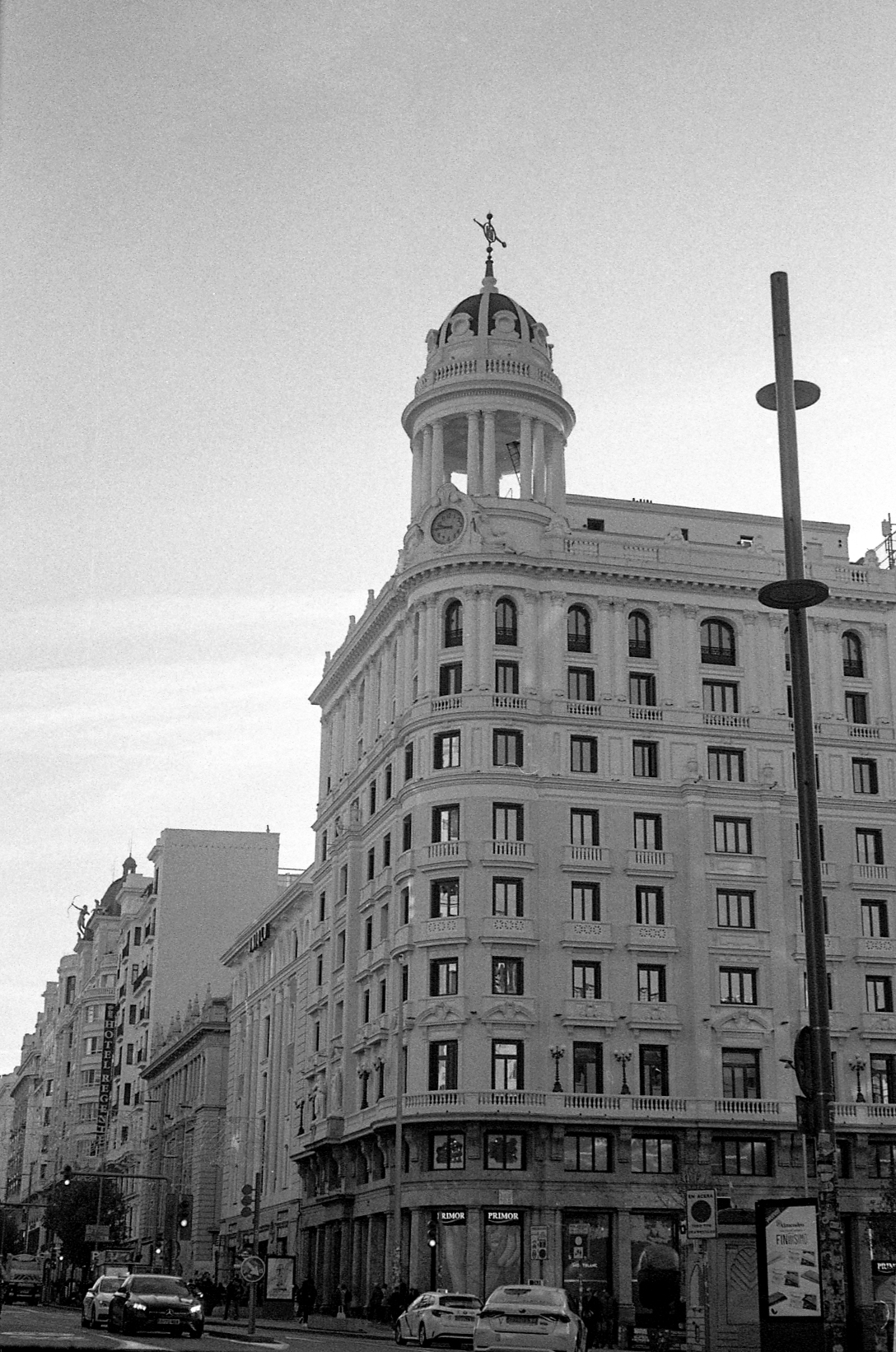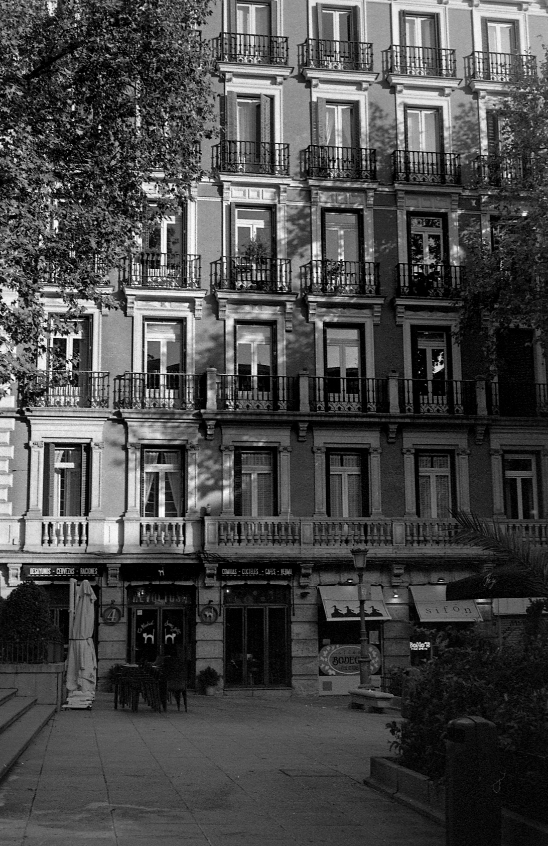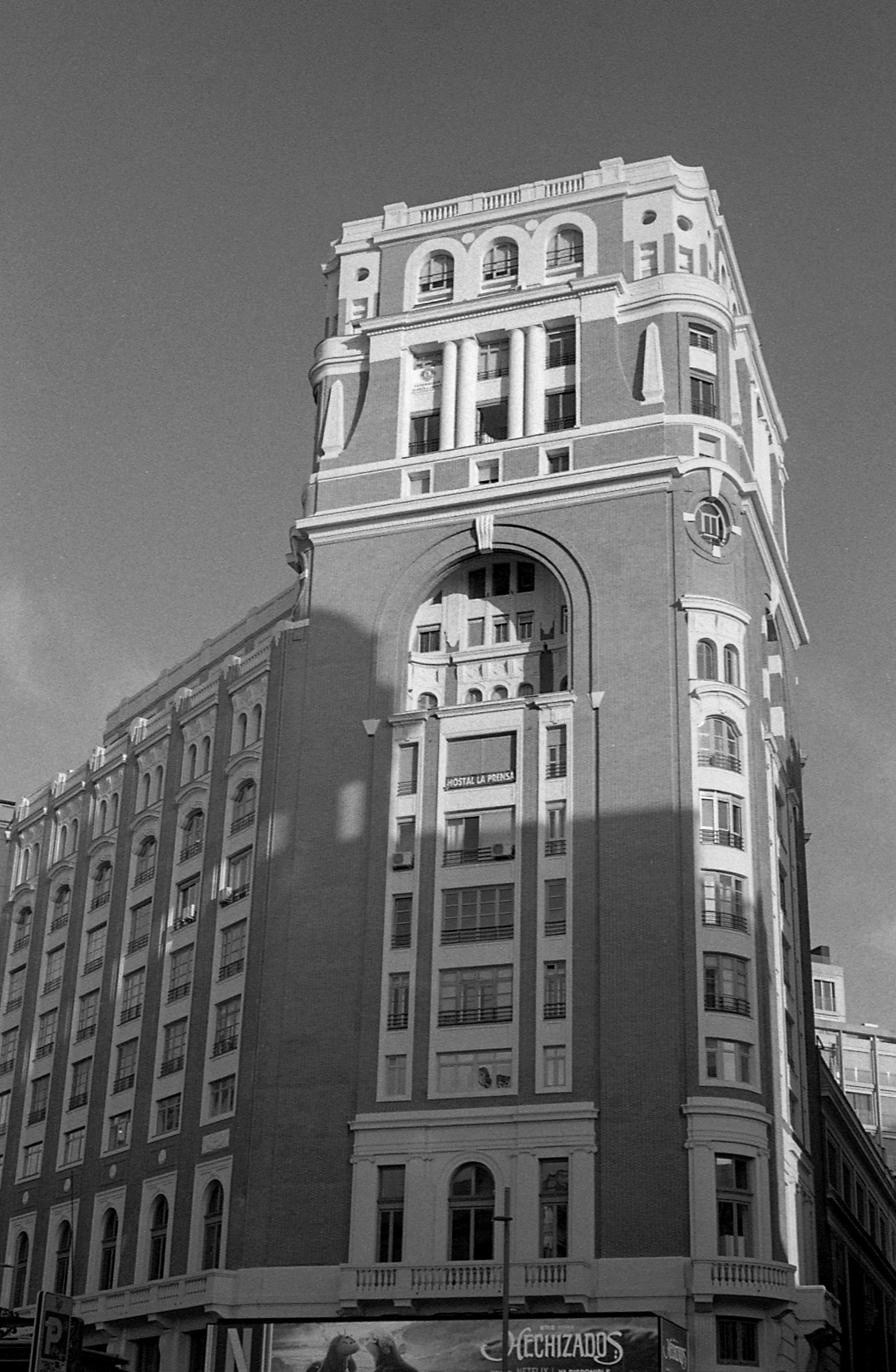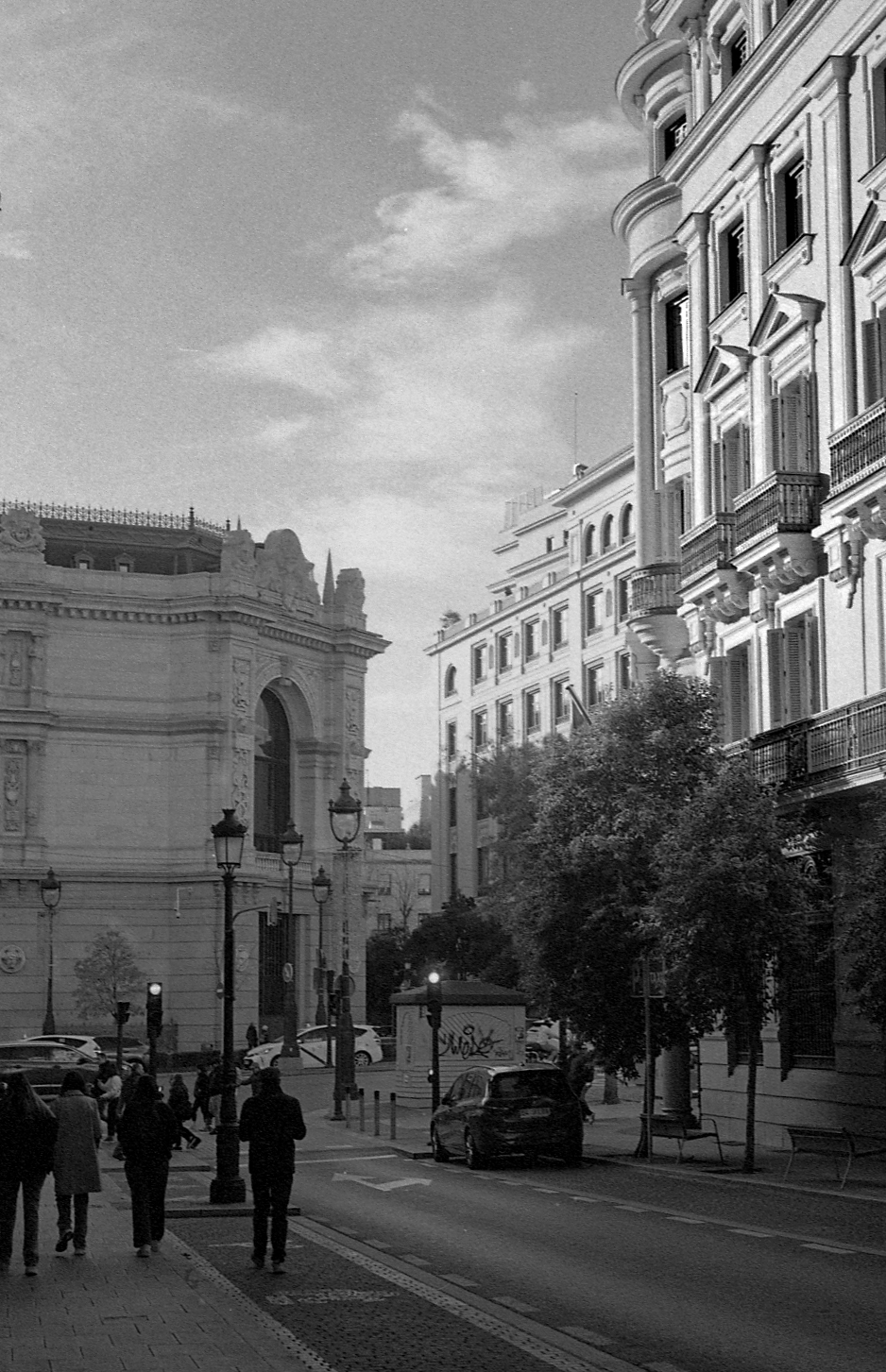 Llevo tiempo queriendo, al menos, probarla, pero siempre encuentro una excusa para tirar de Nikon o, vaya, de Leica, si de telemétricas se trata. Y es que la Vito es una cámara … sin telémetro, jeje, una de esas limitaciones a las que me refería 😉 Ya se ve que, puestos a comparar, las limitaciones de esta cámara setentona se acumulan, en tiempos en los que, apenas cada dos años, nuestras modernidades digitales añaden una mejora (siempre insuperable) a su panoplia de maravillas. En fin. En serio, la única limitación «molesta» de la cámara me ha parecido coyuntural. Culpa mía por haber cargado un HP5 en una cámara que ofrece un 1/300 de velocidad máxima. Peor, jajaja, como agravante, encima, la he estrenado en un día de esos en los que Madrid nos regala una luz magnífica. Nada extraño, ciertamente, menos aún en otoño e invierno. En fin, que no llevar grisómetro tampoco es culpa de la Vito 😉