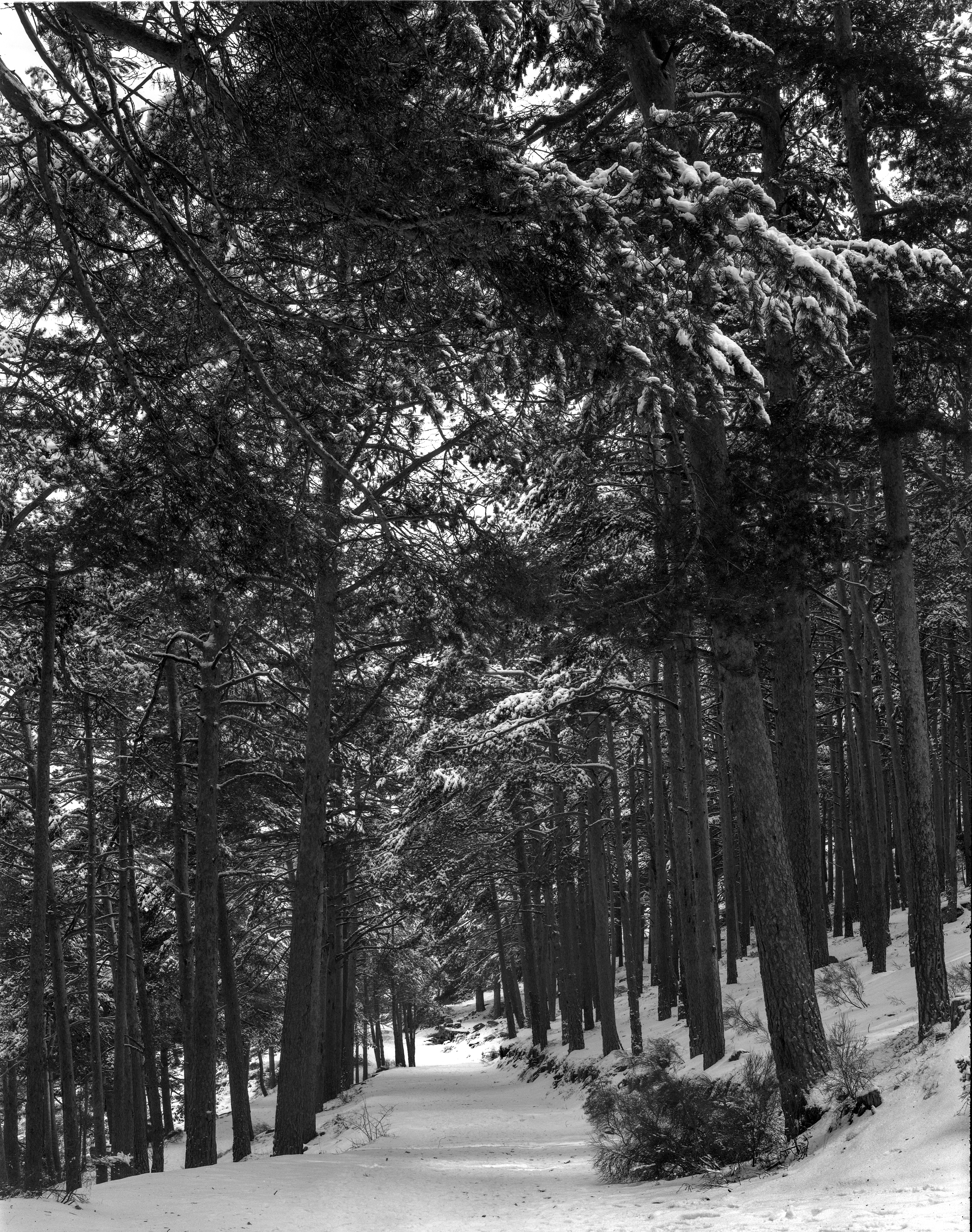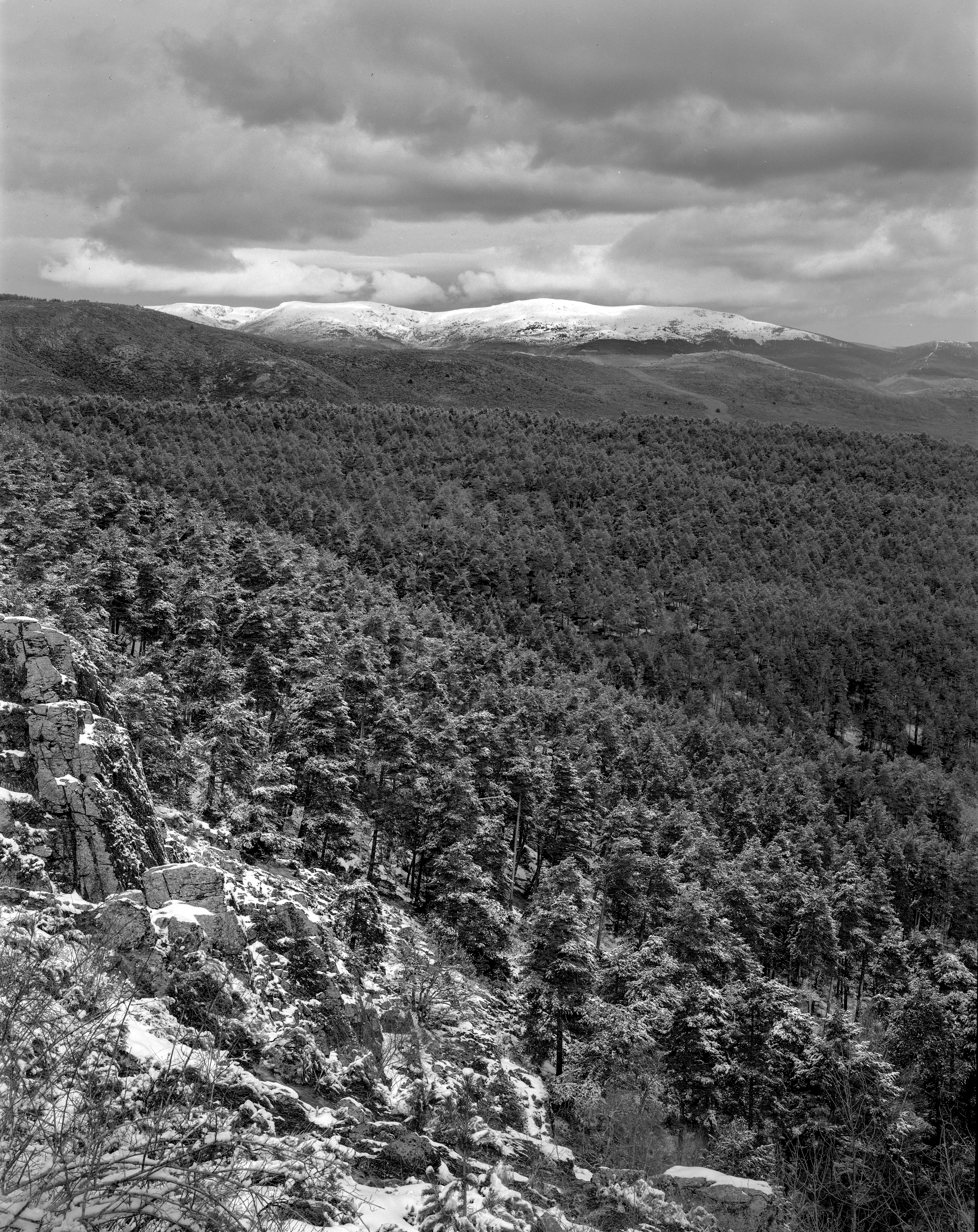 ¡Qué ganas tenía de montaña, caminata y gran formato! Primer fin de semana de nieve en Guadarrama. El pronóstico prometía una mañana fría y soleada … con vuelta a las nevadas, aunque moderadas, a eso del mediodía. Y cumplió.