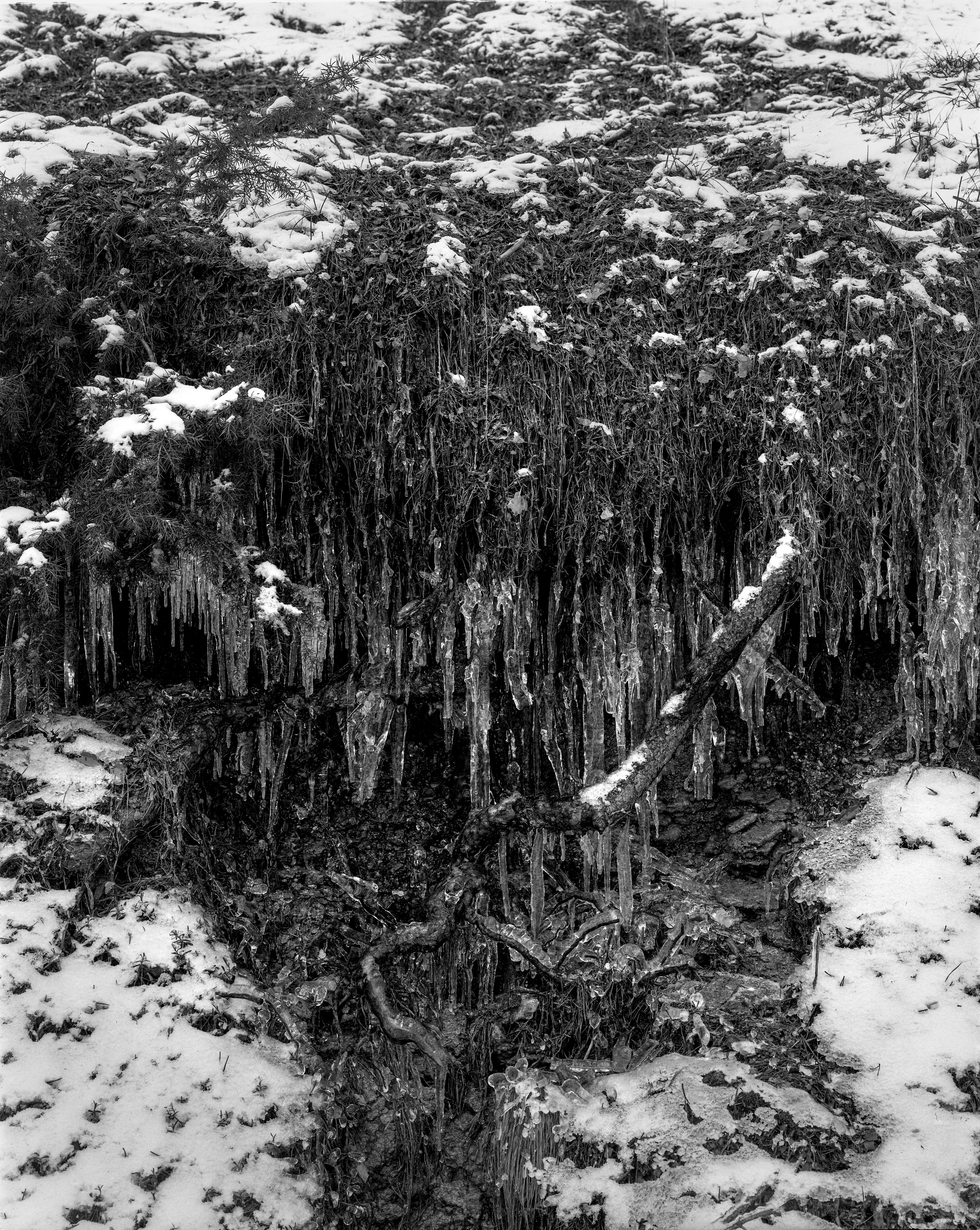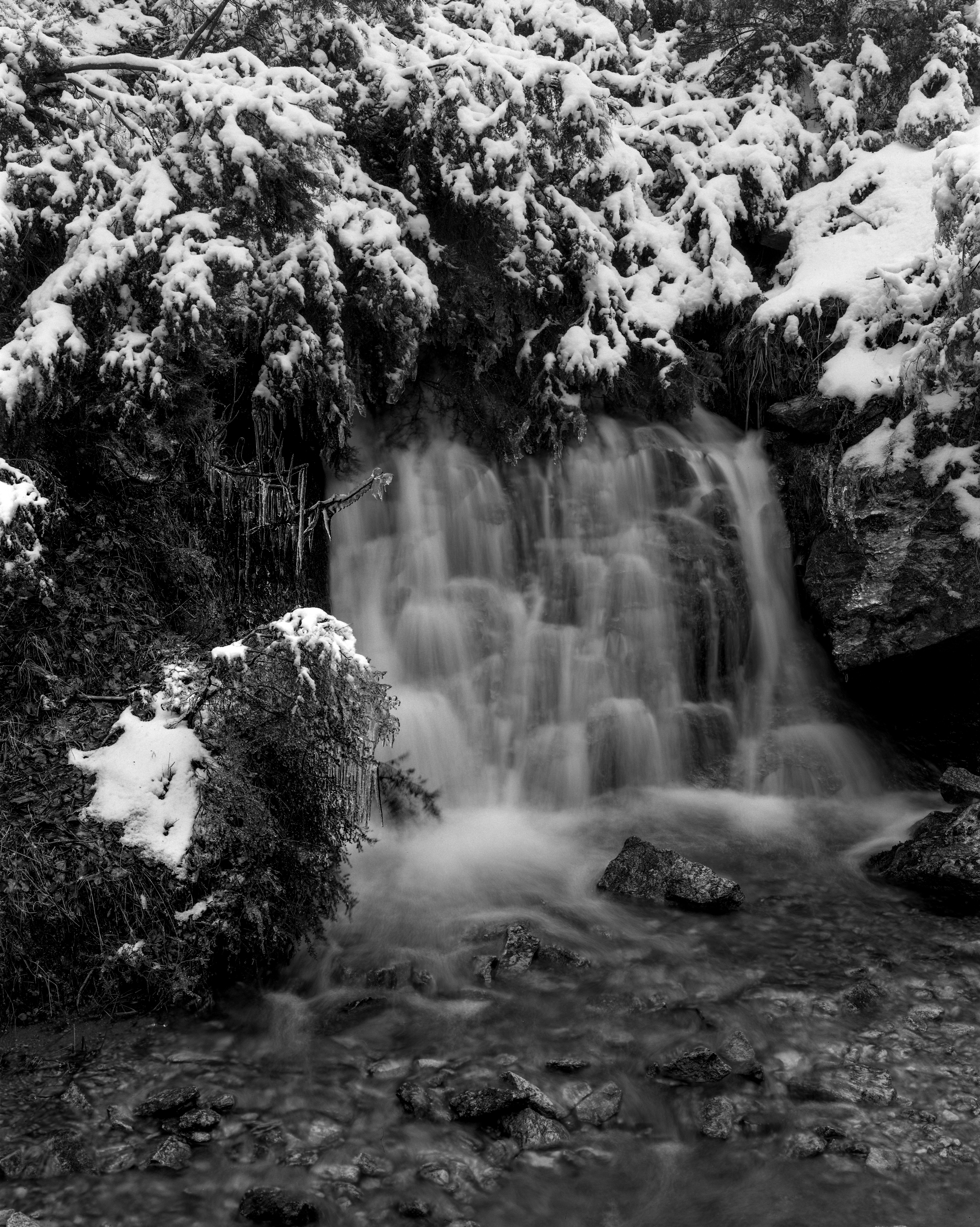 Llegué temprano con la idea de caminar hasta el Prado Toril, imaginando que el camino estaría jalonado con arroyos y fuentes, vistas desde la cara norte del puerto desde las que pausar para hacer fotos con la Chamonix F1 😉 Y así fue. Aunque no pude llegar al Prado ¡Nunca había visto tanta agua en Canencia! Con todo, buscando como llegar a mi destino sin calarme, completé un recorrido de casi 16km, jeje, llevando la Chamo, la panoplia completa, para, ya sabéis, hacer apenas media docena de placas.